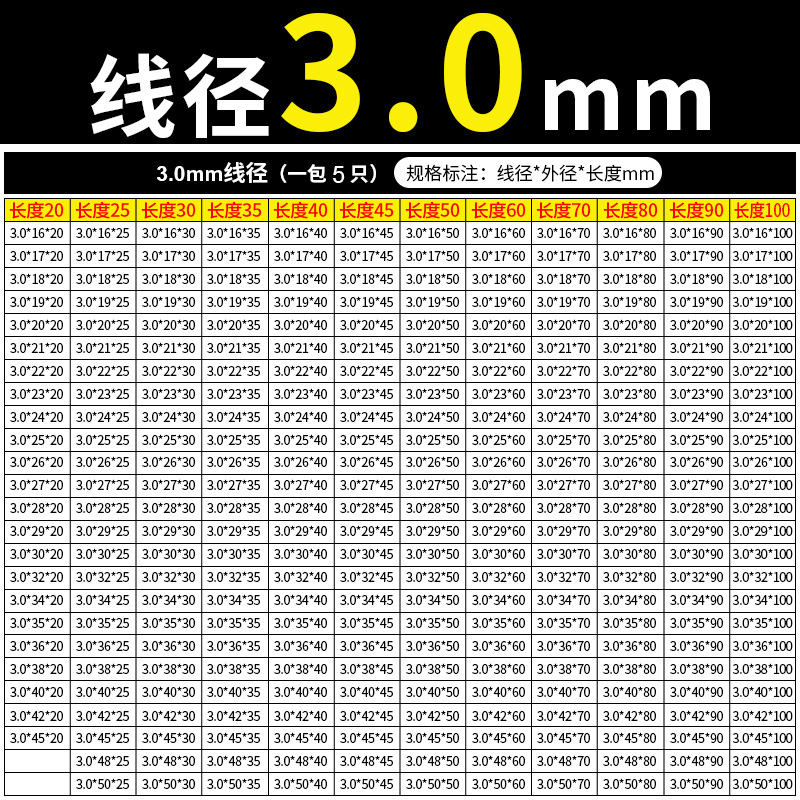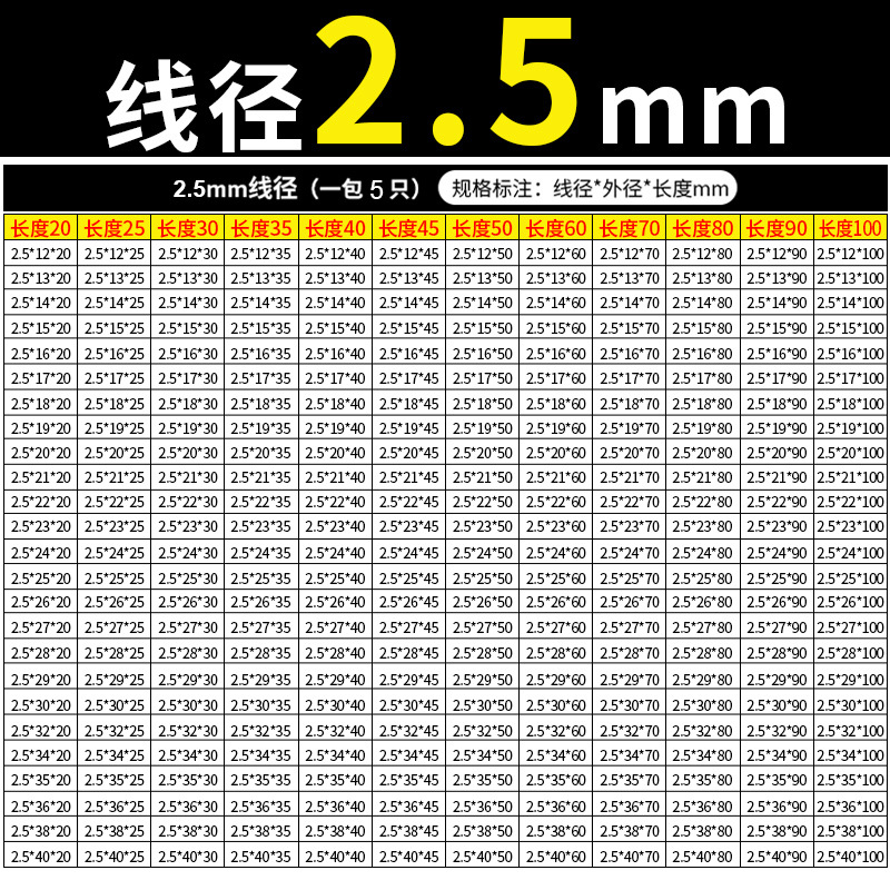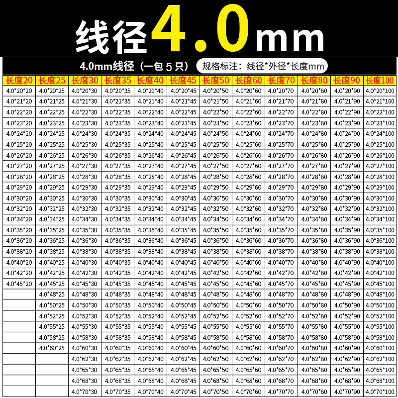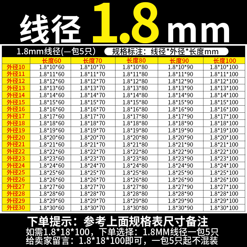 • 와이어 직경 1.8mm, 길이 60-100 (팩당 5개)