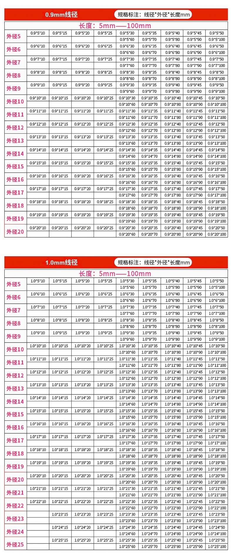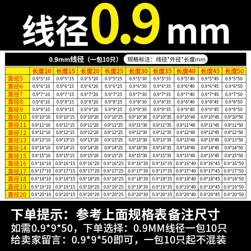 • 와이어 직경 0.9mm, 길이 5-50(팩당 10개)
