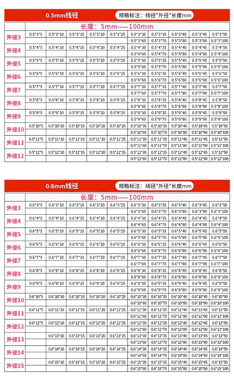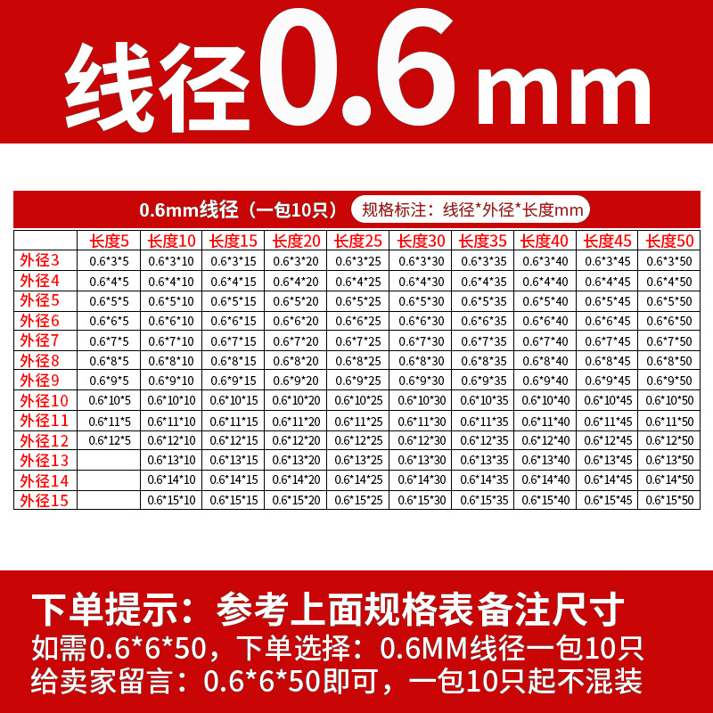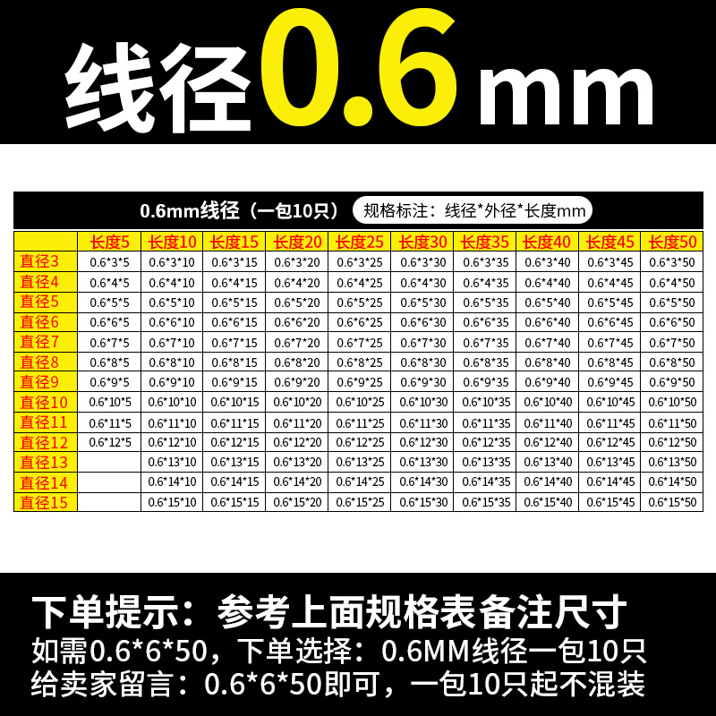 • 와이어 직경 0.6mm, 길이 5-50(팩당 10개)