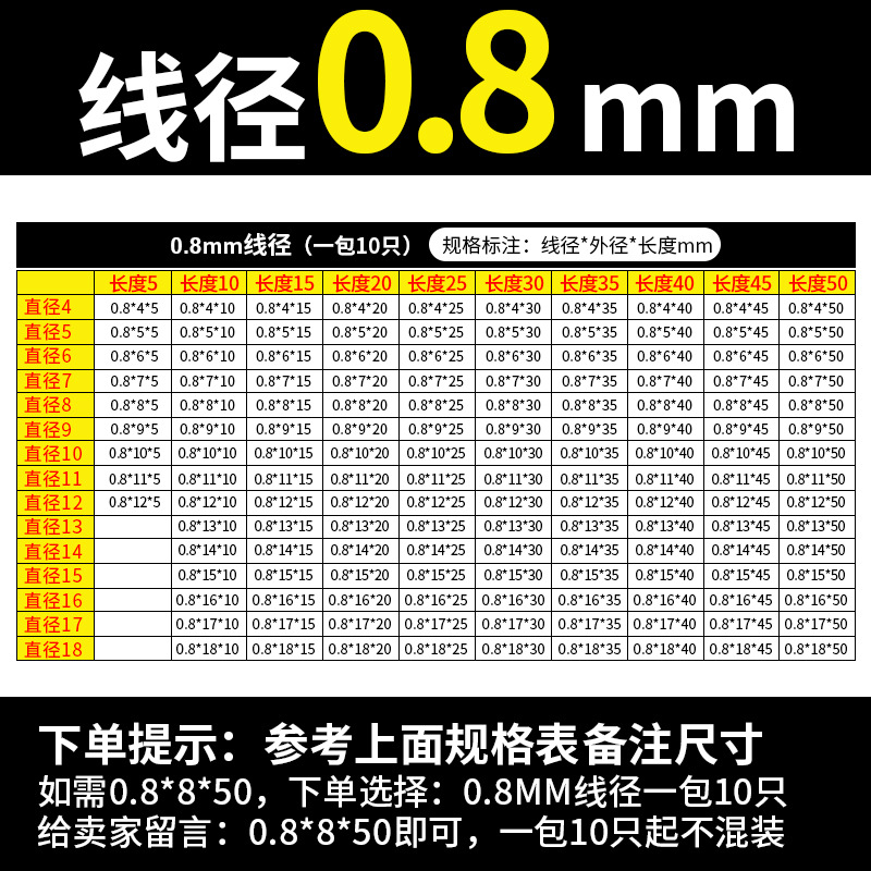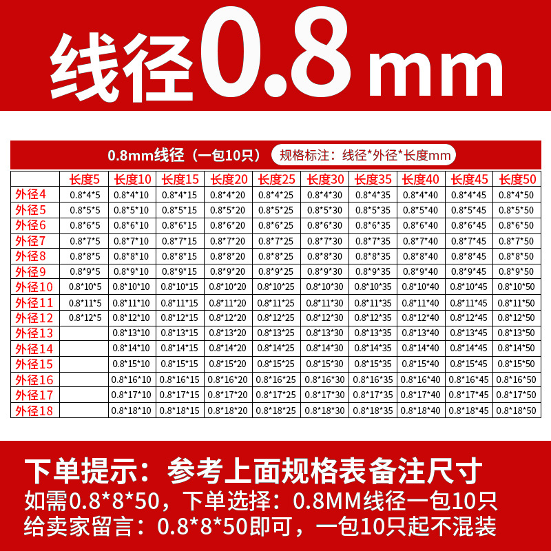 • 와이어 직경 0.8mm, 길이 5-50(팩당 10개)