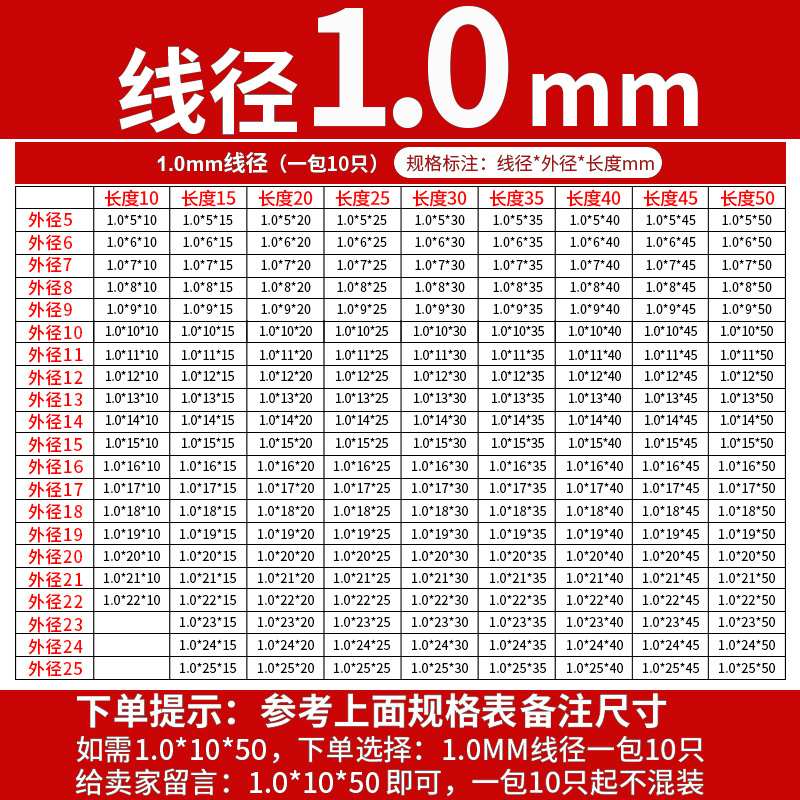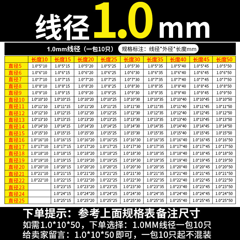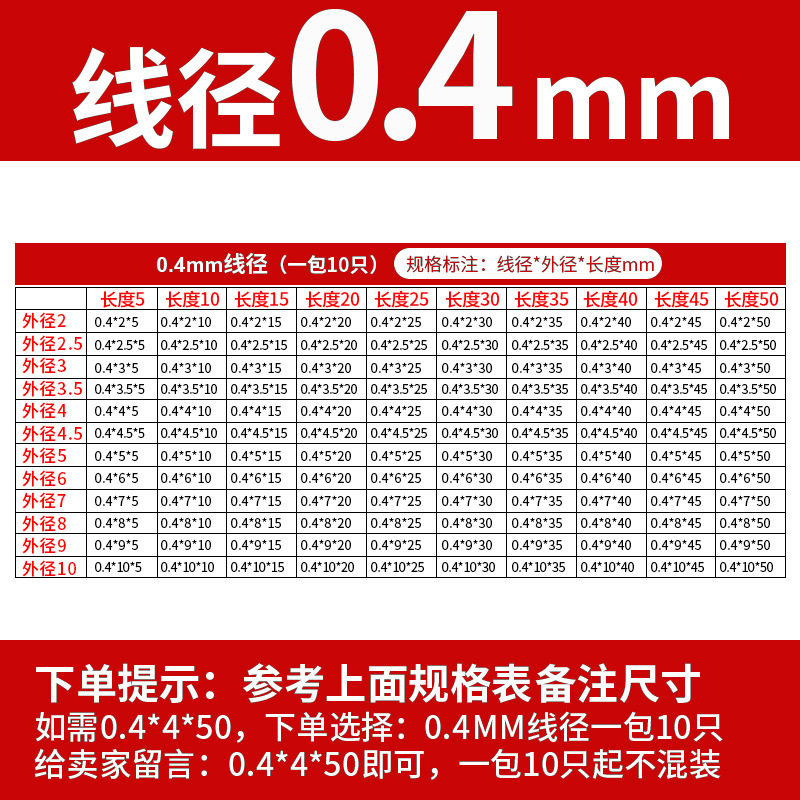 • 와이어 직경 1.0mm, 길이 10-50 (팩당 10개)