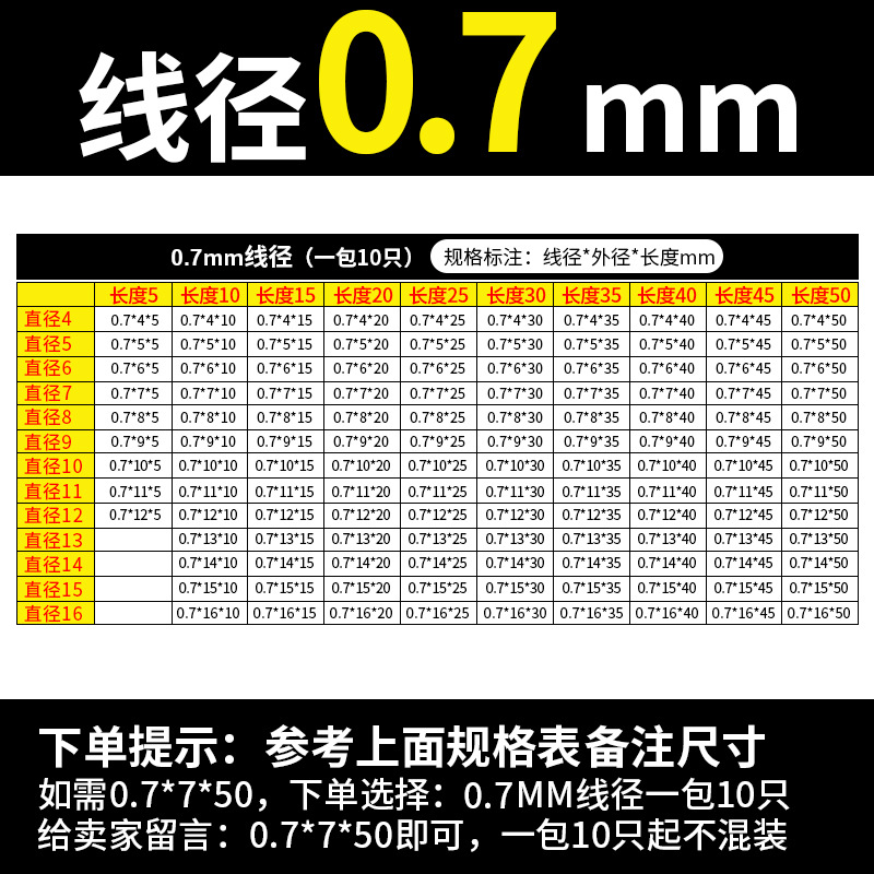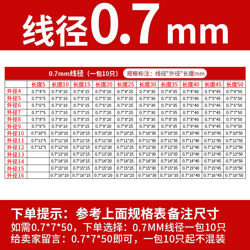 • 와이어 직경 0.7mm, 길이 5-50 (팩당 10개)