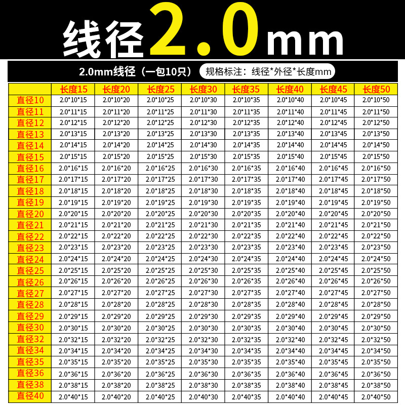 • 와이어 직경 2.0mm, 길이 15-50(팩당 10개)