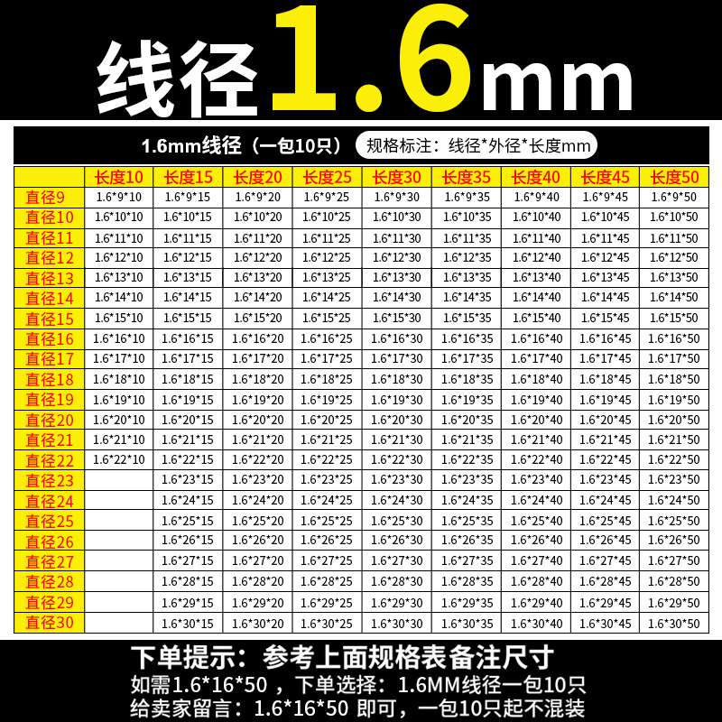 • 와이어 직경 1.6mm, 길이 10-50 (팩당 10개)