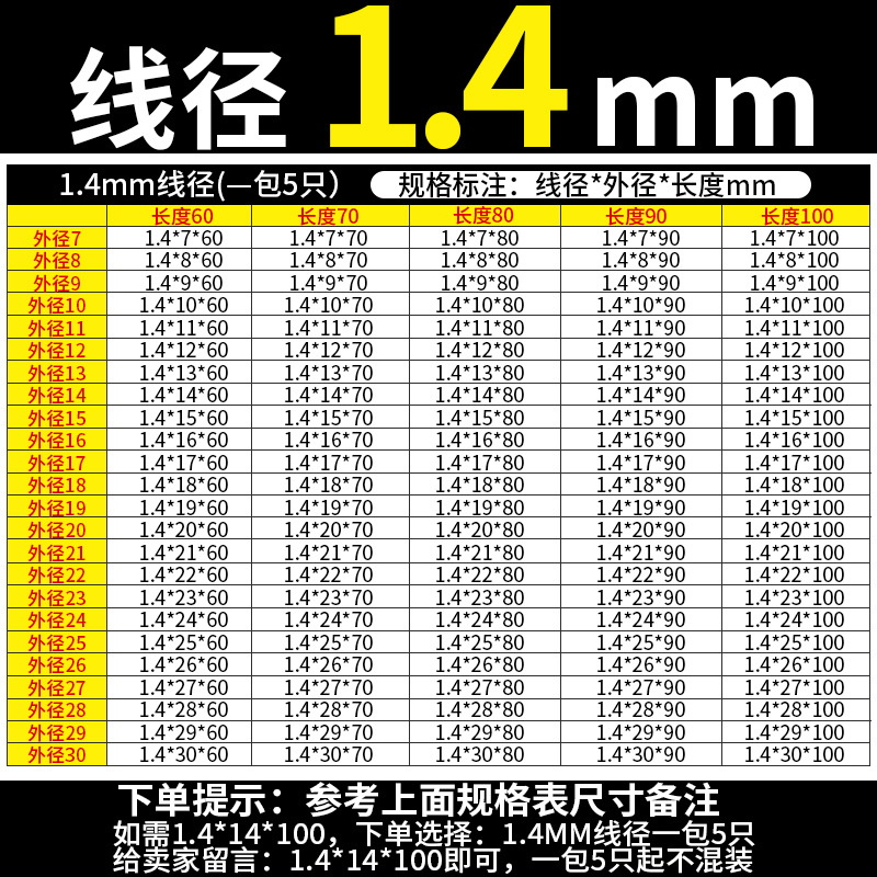 • 와이어 직경 1.4mm, 길이 60-100 (팩당 5개)