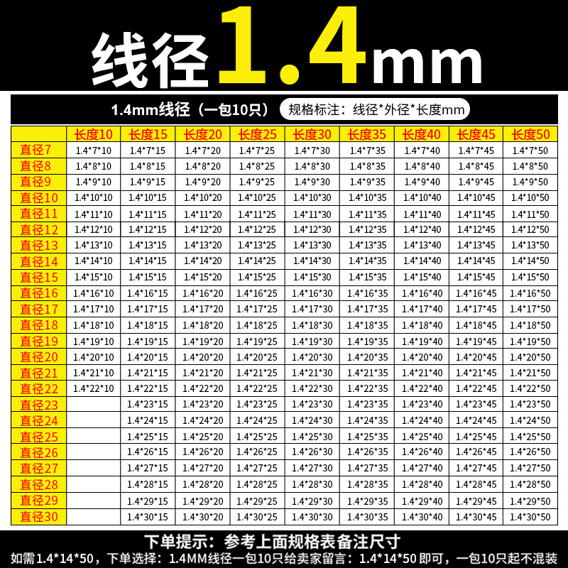 • 와이어 직경 1.4mm, 길이 10-50 (팩당 10개)