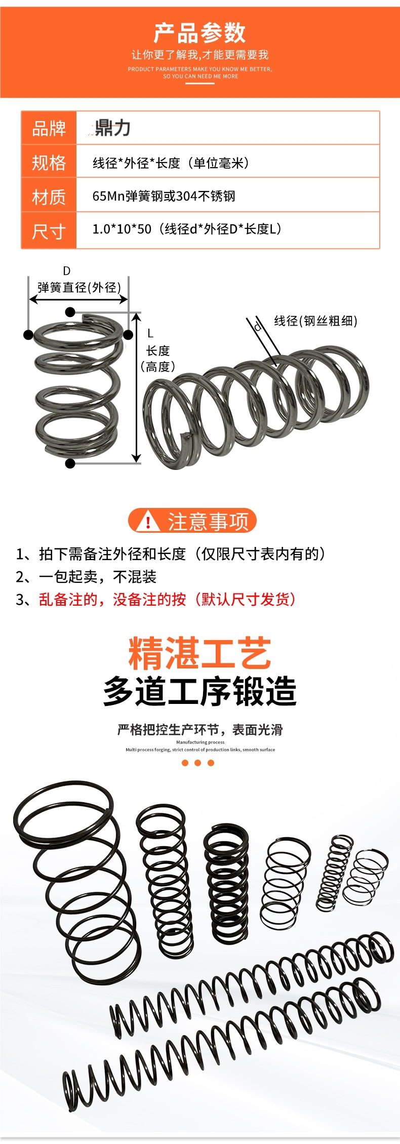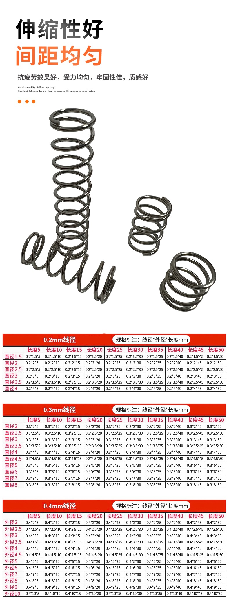 크기 봄 압축 봄 압축 봄 충격 흡수 반환 Y 스프링 와이어 직경 0.2-5.0mm 스프링스토어 가기