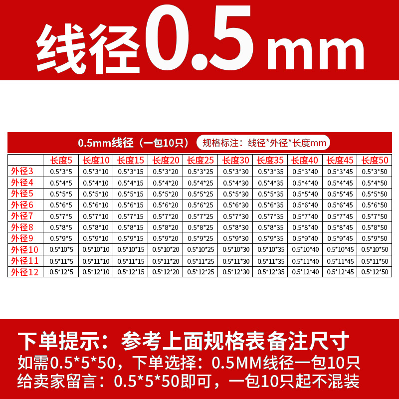• 와이어 직경 0.5mm, 길이 5-50 (팩당 10개)