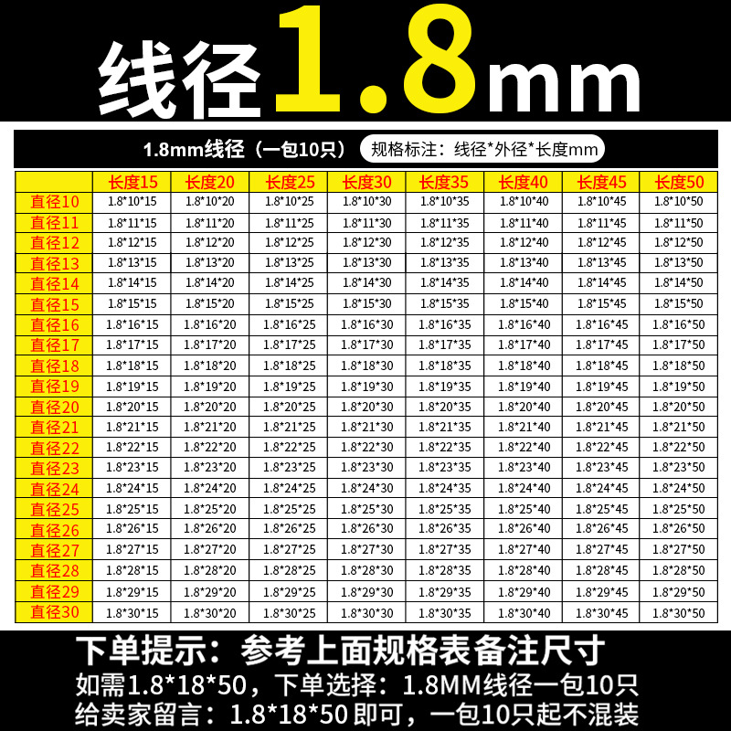 • 와이어 직경 1.8mm, 길이 15-50 (팩당 10개)