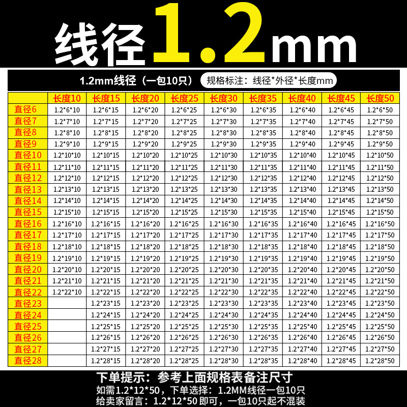 • 와이어 직경 1.2mm, 길이 10-50 (팩당 10개)