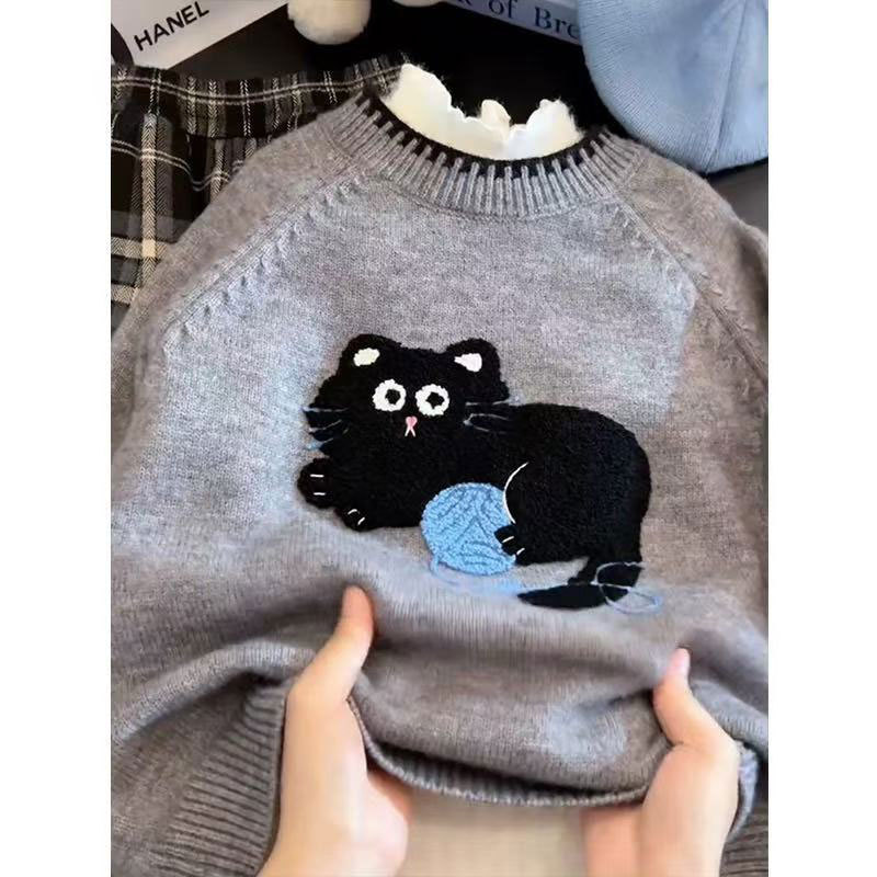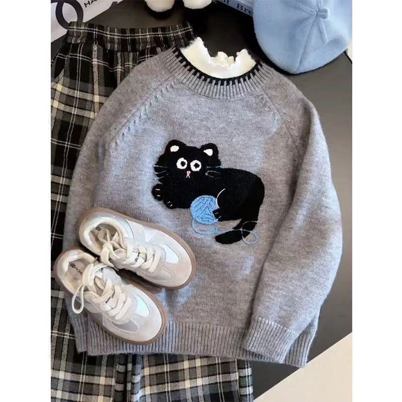 소녀들의 가을과 겨울 2024 새로운 아이들의 겨울 두꺼운 내베이스 셔츠 여자 겨울 스웨터 겨울