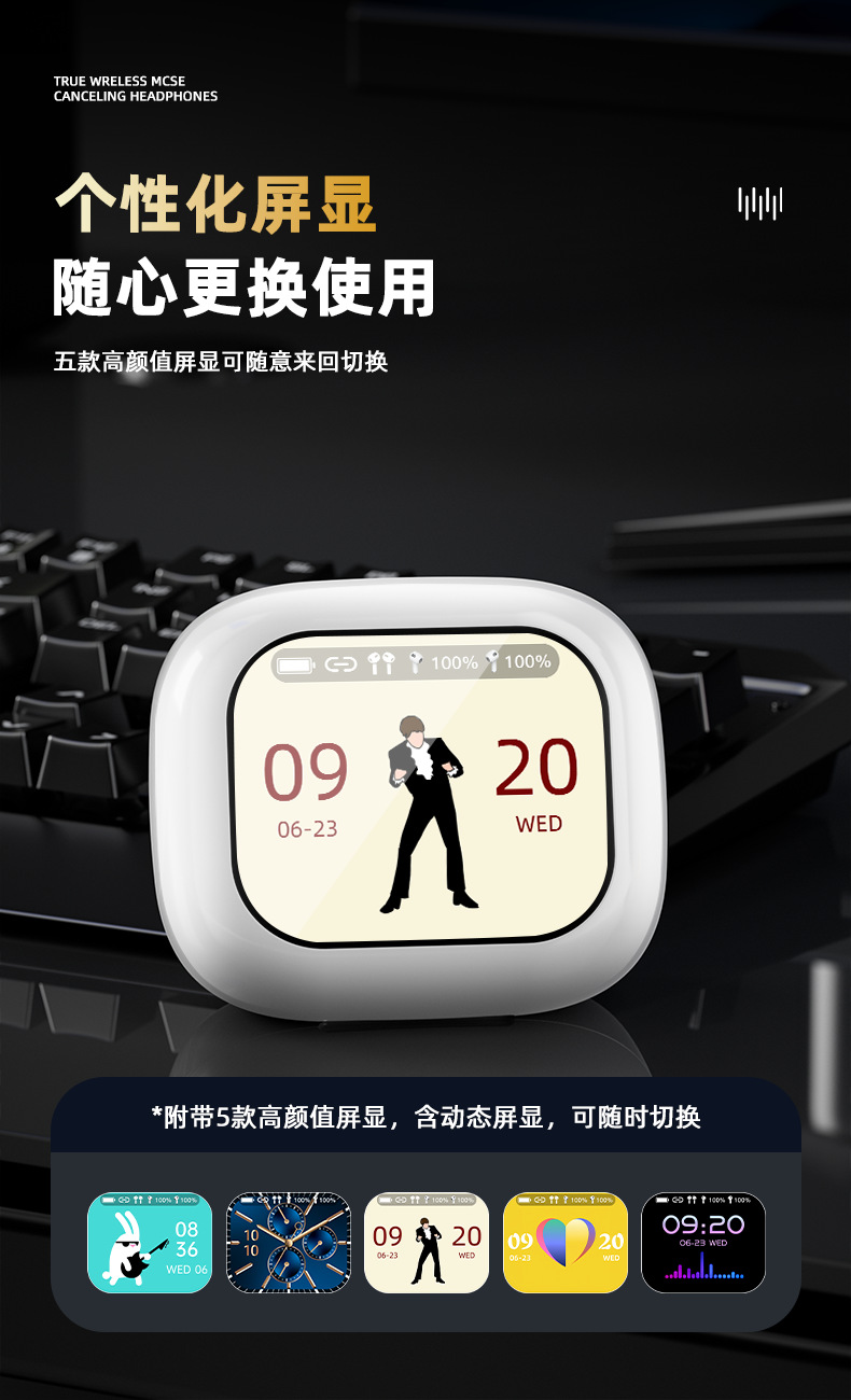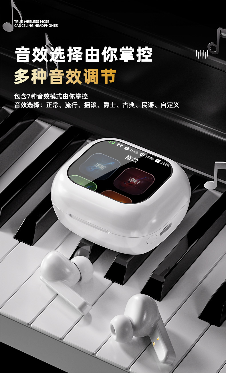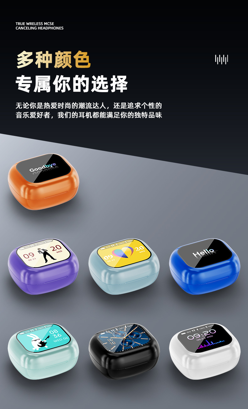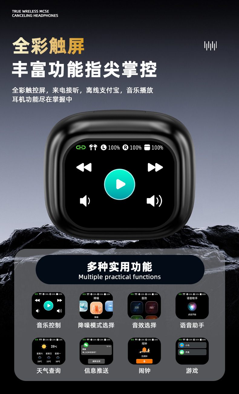 국경 직접 공급 WT-7 블루투스 헤드셋 LCD 풀 컬러 스마트 디스플레이 터치 스크린 TWS 무선 헤드셋 ANC 소음 감소
