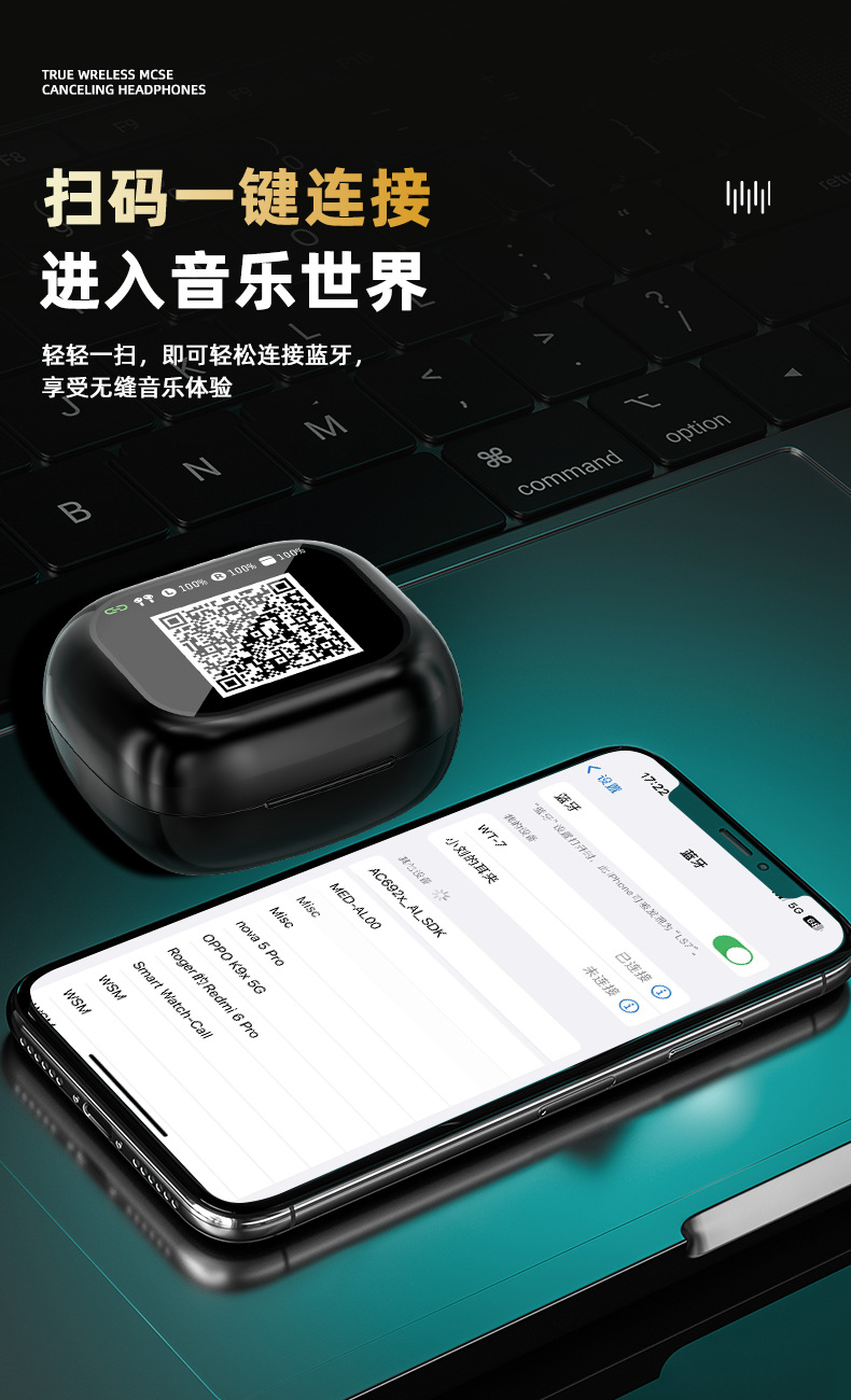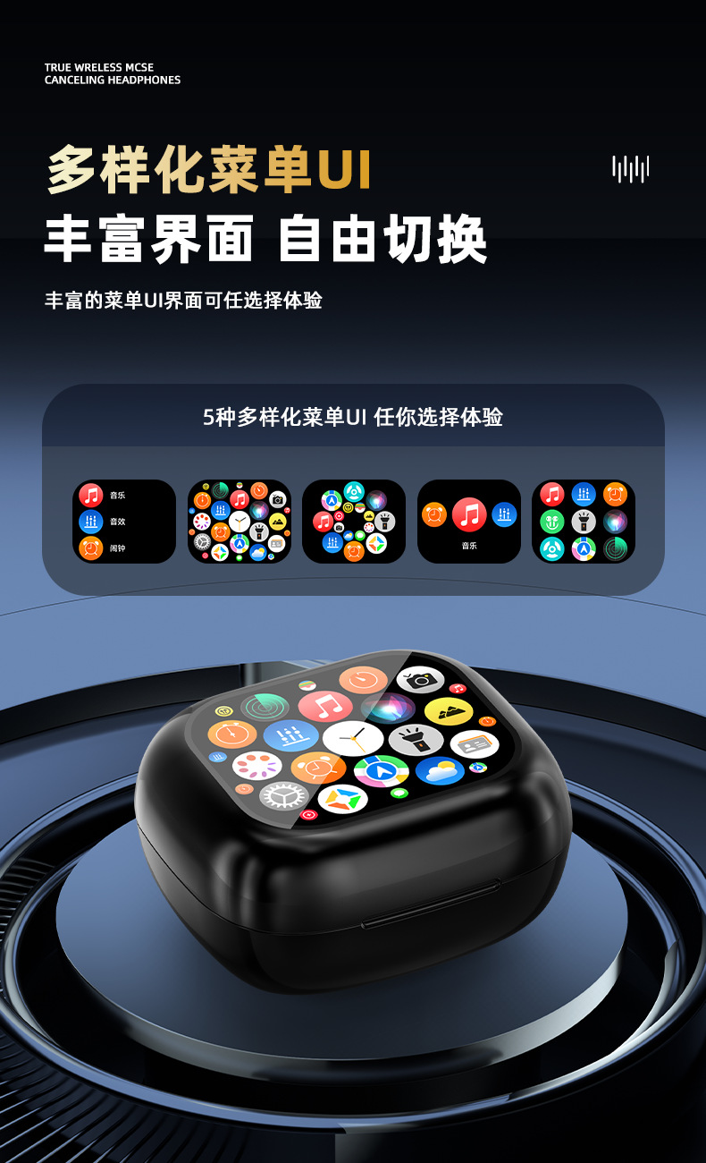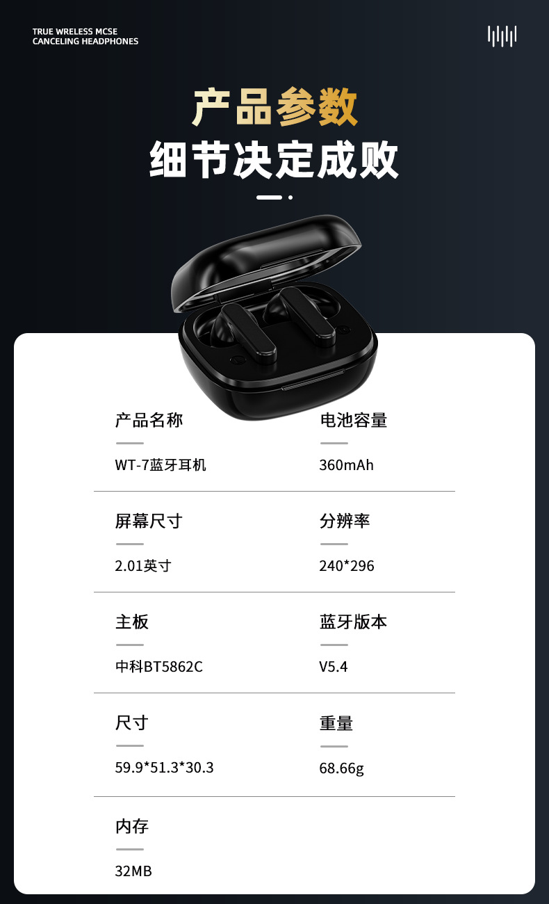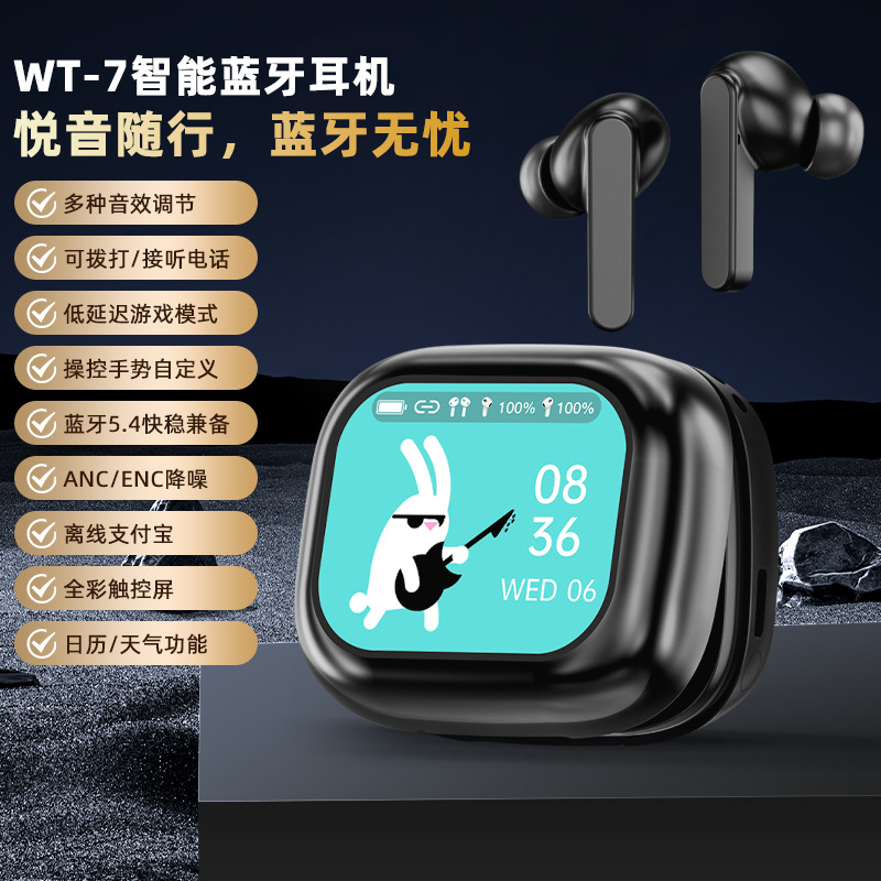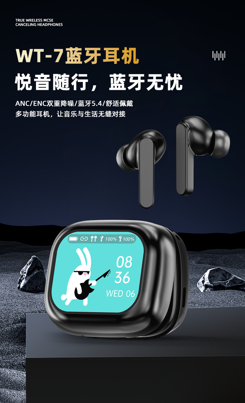 국경 직접 공급 WT-7 블루투스 헤드셋 LCD 풀 컬러 스마트 디스플레이 터치 스크린 TWS 무선 헤드셋 ANC 소음 감소스토어 가기