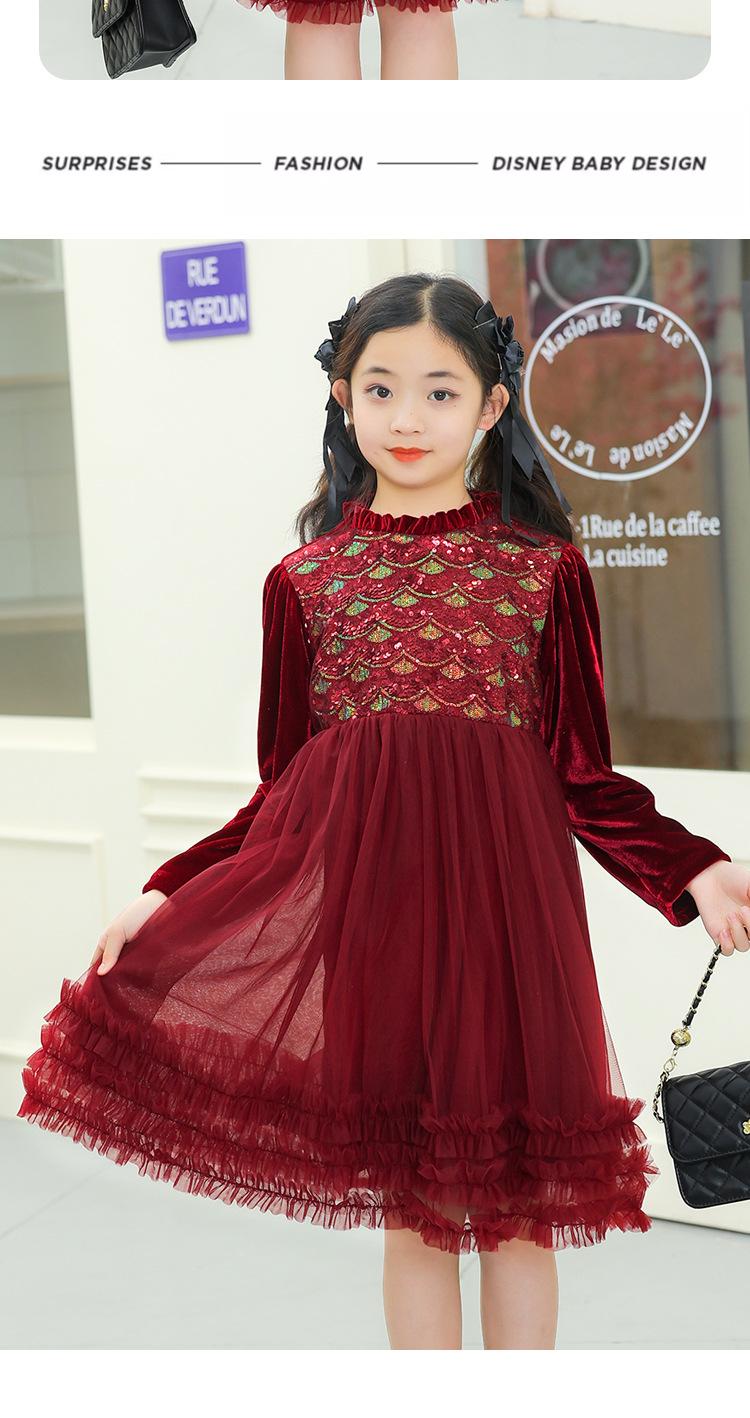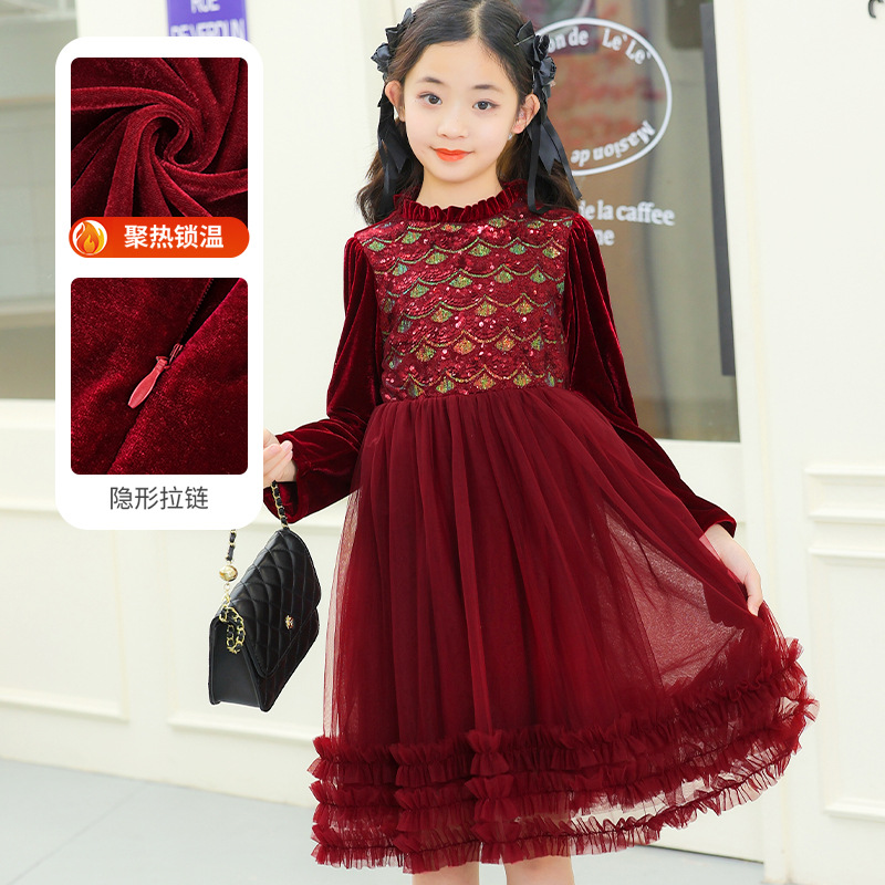 미니 프린세스 걸스 겨울 원피스 세련된 긴 소매 공주 원피스 새해 원피스 따뜻한 패션 선박 원피스스토어 가기