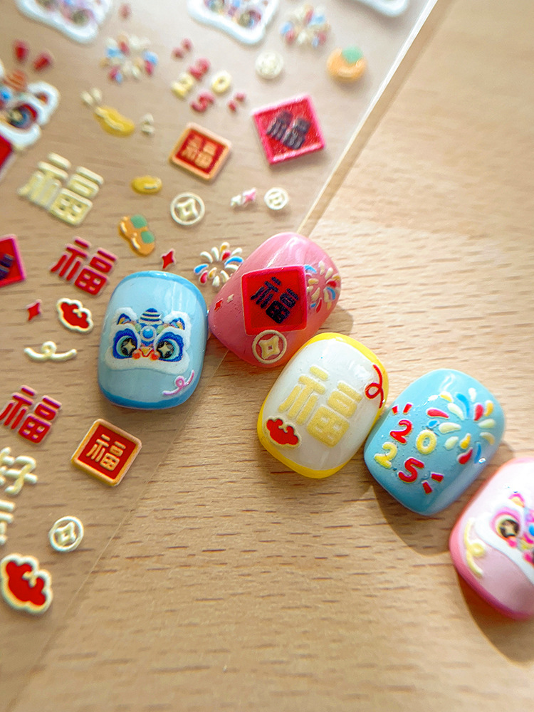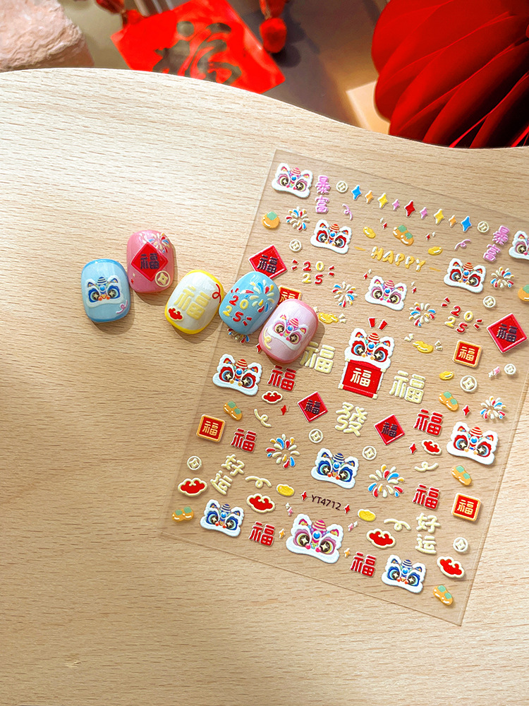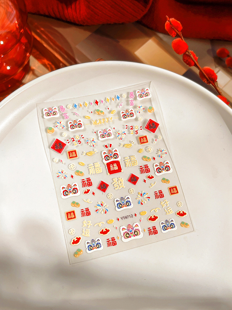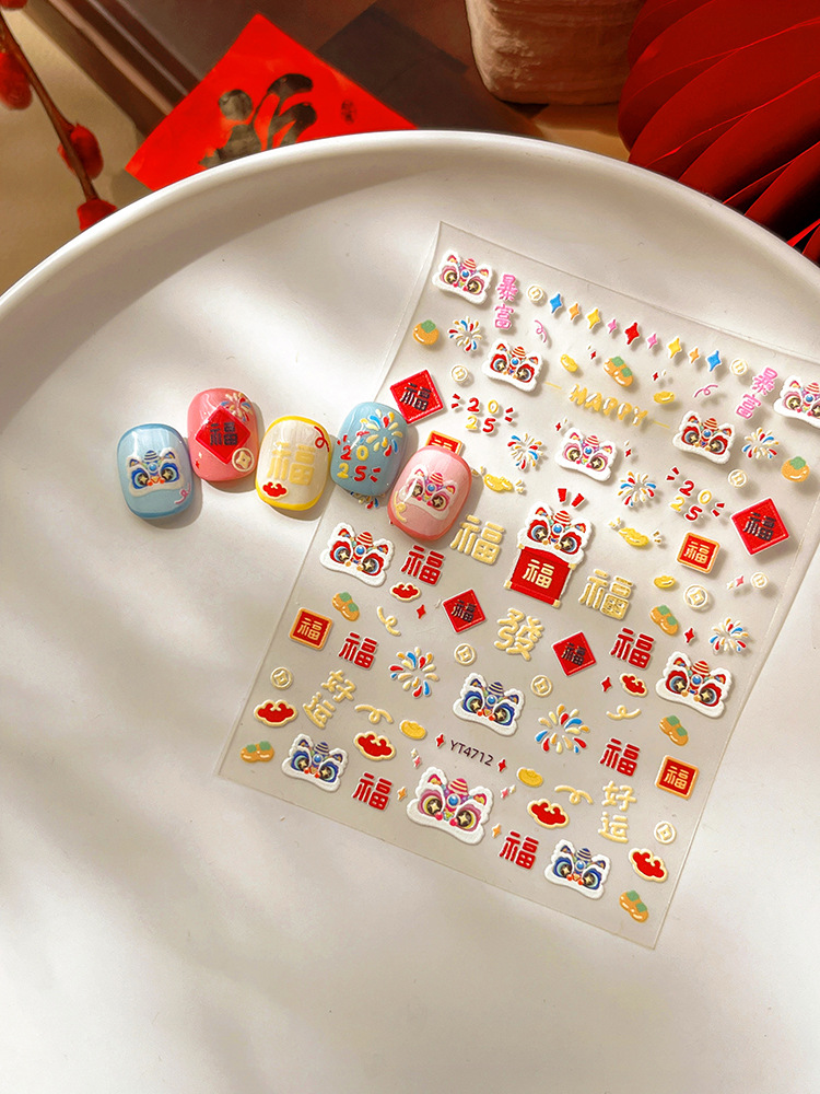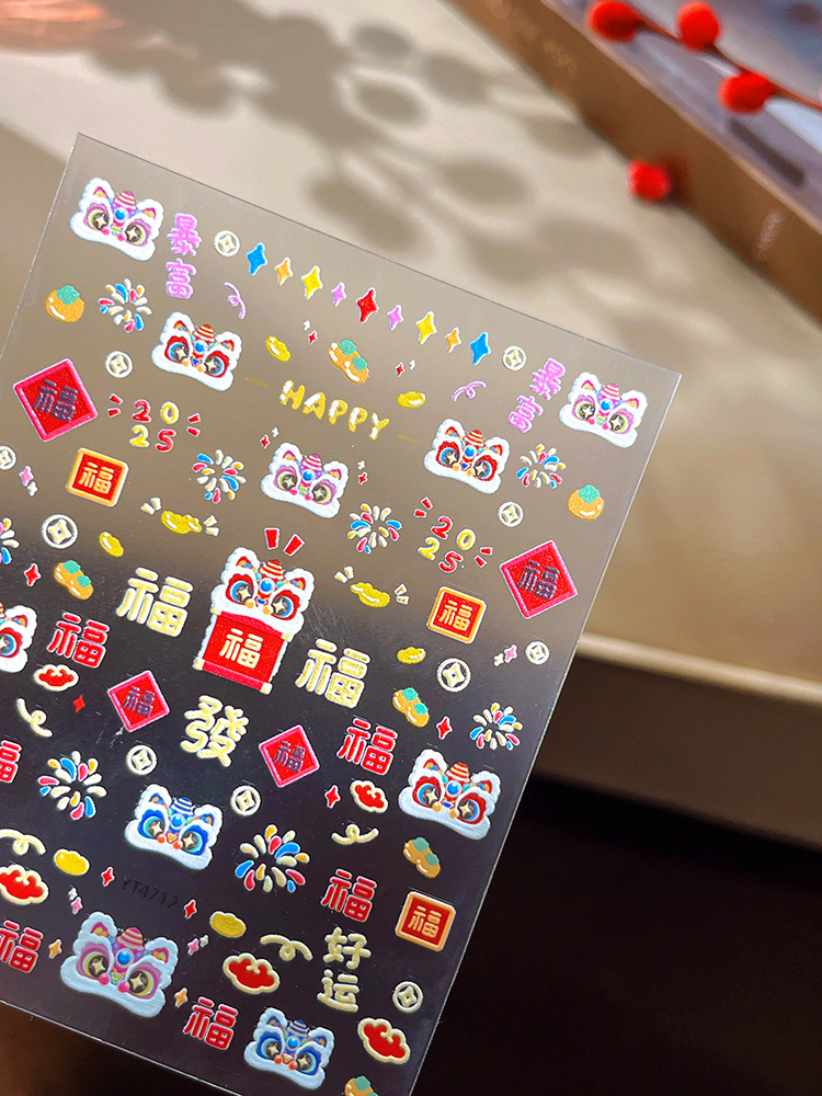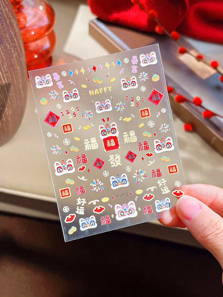YITU 개미 그림 구호 2025 사자 댄스 네일 아트 스티커 좋은 행운 풍부한 접착 네일 장식 스티커 YT4712