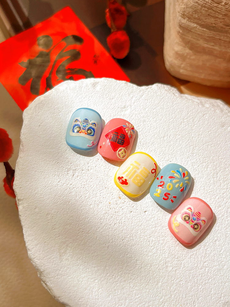 YITU 개미 그림 구호 2025 사자 댄스 네일 아트 스티커 좋은 행운 풍부한 접착 네일 장식 스티커 YT4712스토어 가기