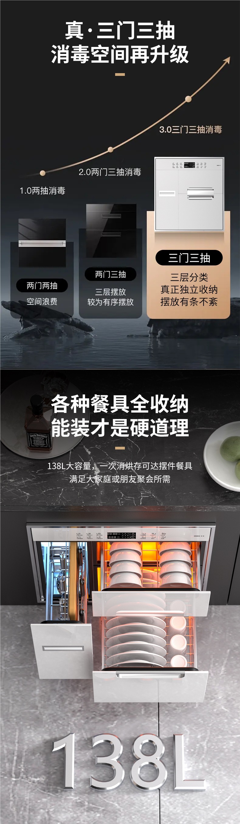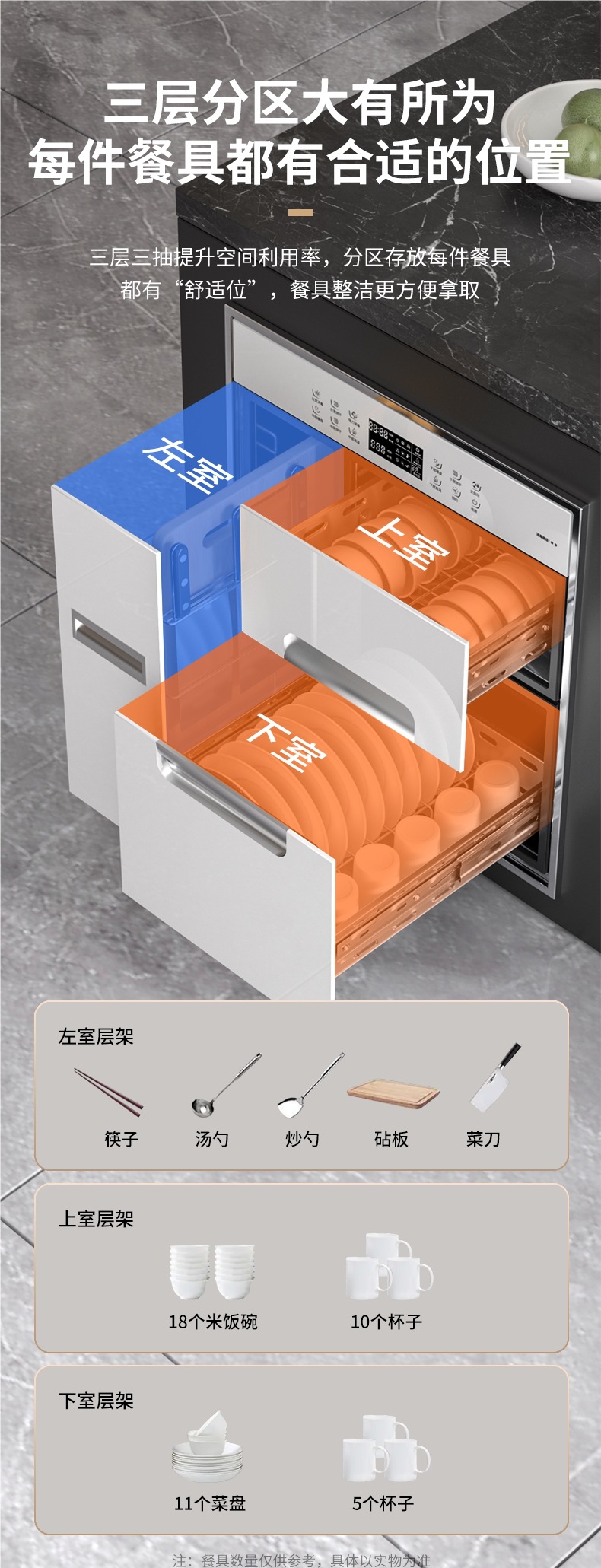 • 128L 스타 블랙 보이스 모델 + 두꺼운 스테인레스 스틸 접시 랙 + 어린이 잠금 장치 + 음성 제어 [3 레이어]