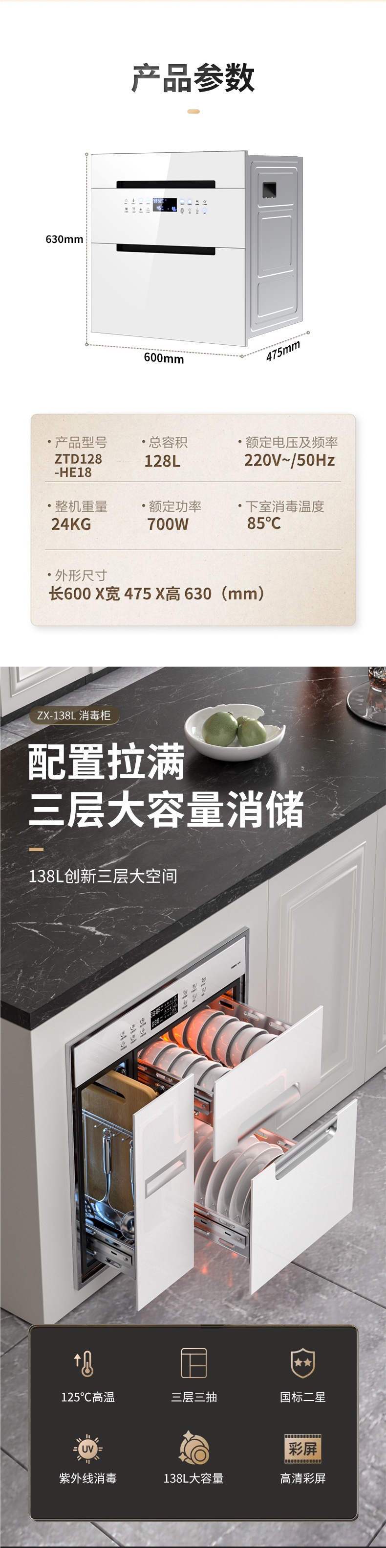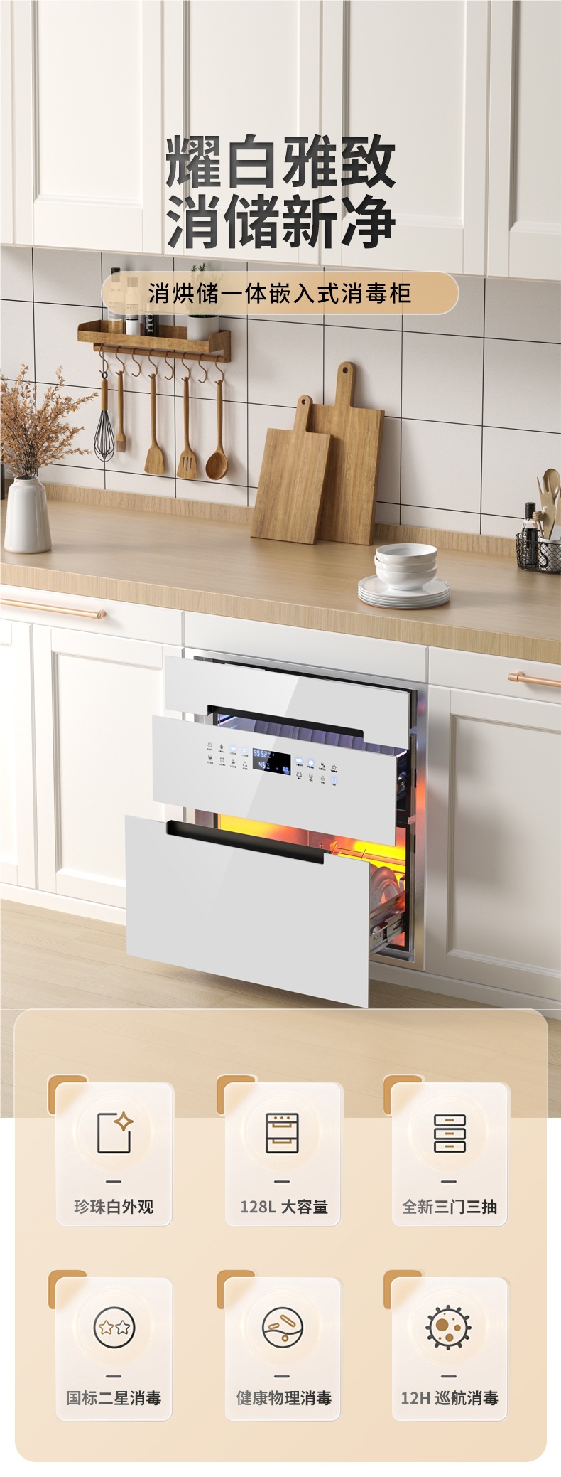 좋은 아내 소독 캐비닛 가정용 작은 부엌 소독 그릇 캐비닛 랙 가정용 128L 고온 소독 그릇 랙스토어 가기