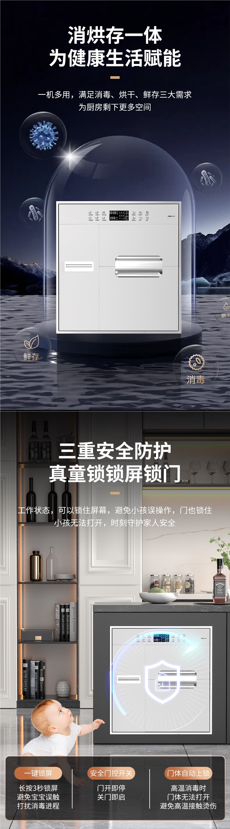 • 120L 실버 업그레이드 모델 + 12가지 기능 + 건조 + 음이온 소독 [3겹]