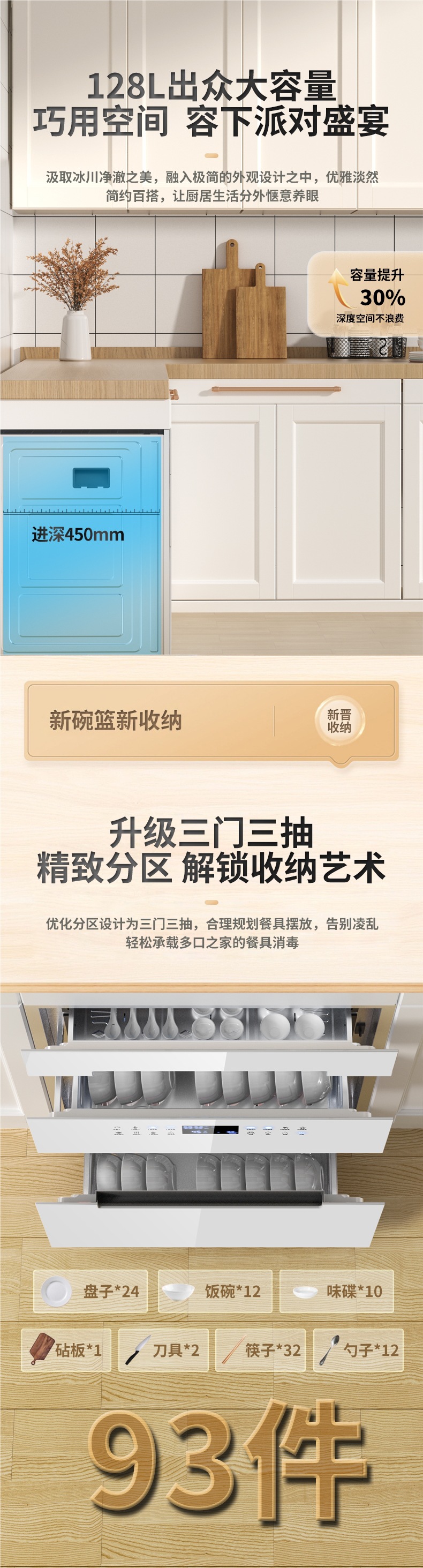 • 120L 골드 주파수 변환 모델 + 16가지 기능 + 스테인리스 접시걸이 + 자동 소독 [3단]