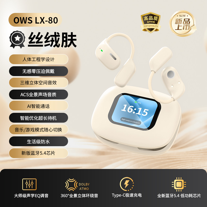 오랫동안 착용해도 통증이 없는 크로스보더 아마존 실시간 번역 헤드셋, 풀 컬러 스크린, 터치 가능한 무선 귀걸이형 블루투스 헤드셋스토어 가기