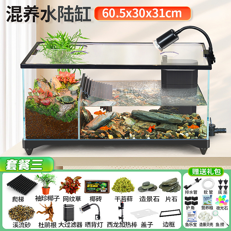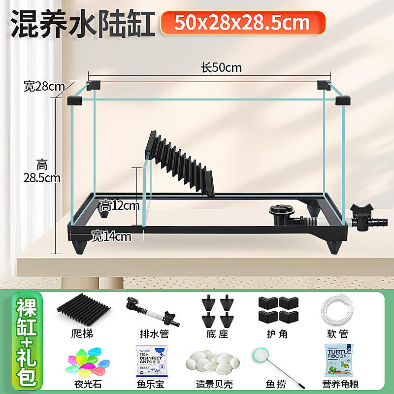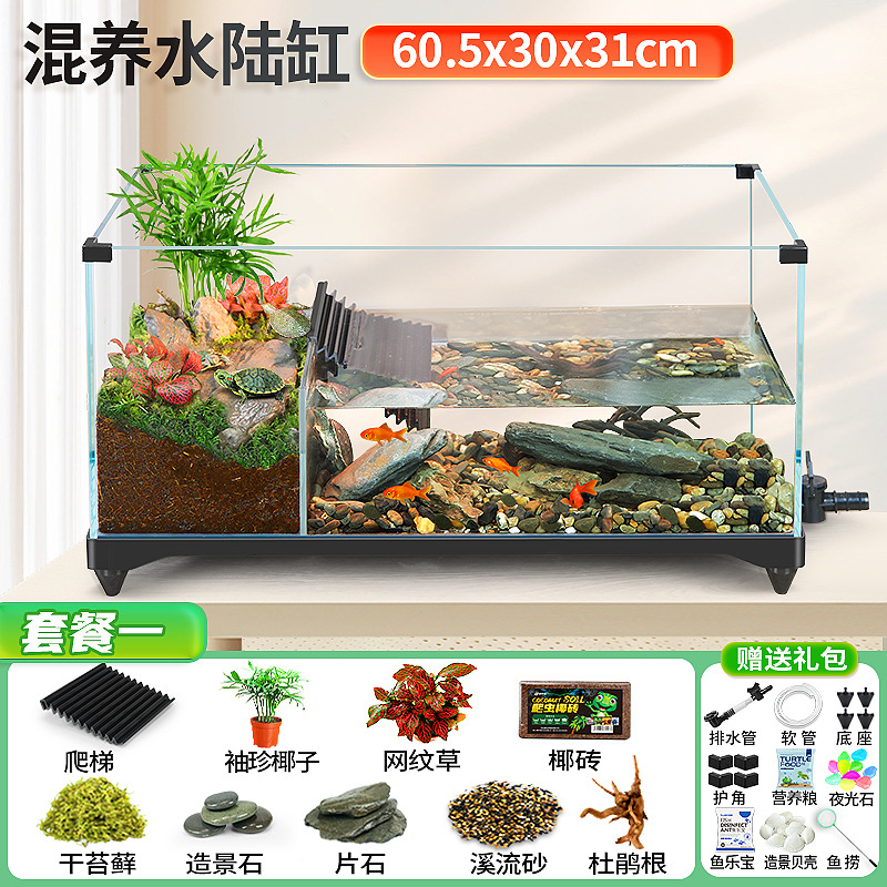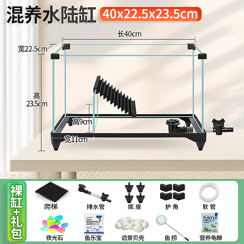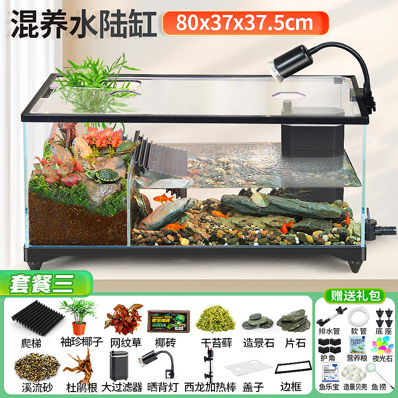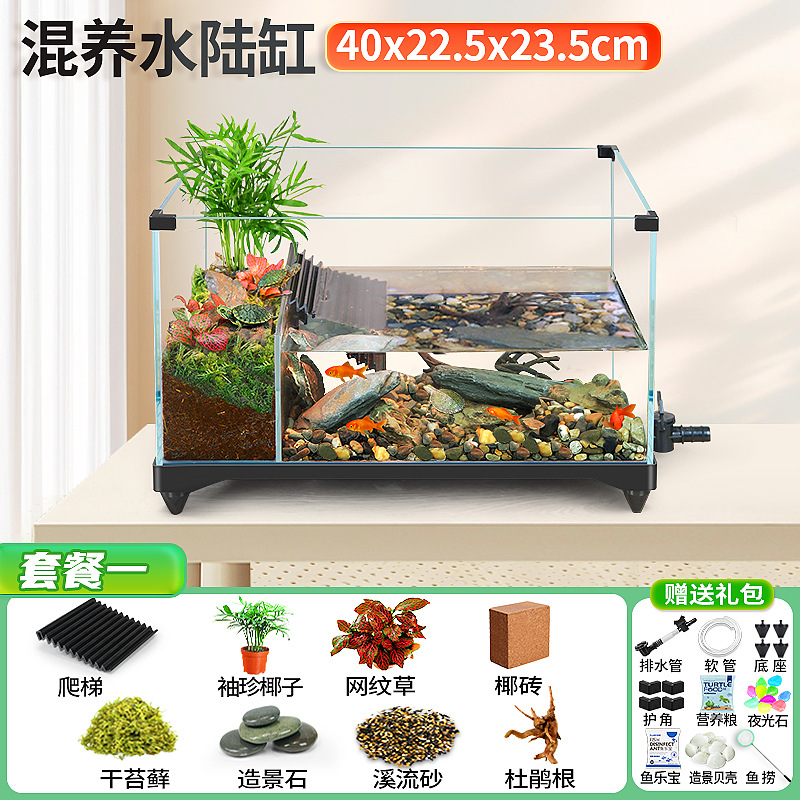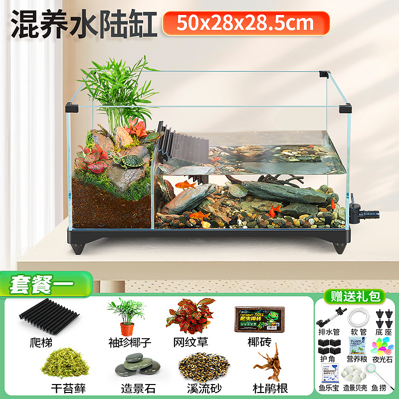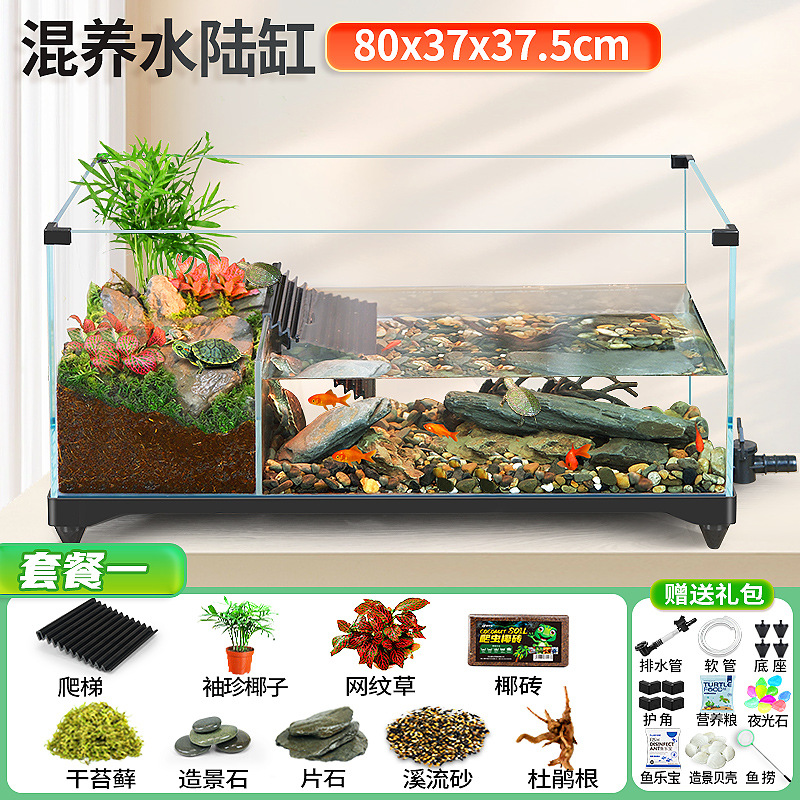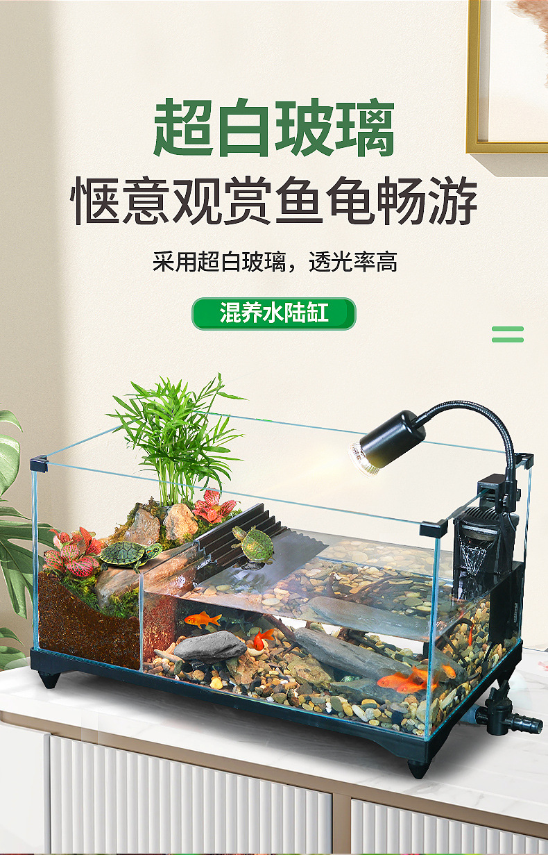 거북이 실린더 수륙 양용 실린더 슈퍼 화이트 유리 생태 조경 실린더 특수 실린더 작은 빌라 거북이 물고기 혼합 먹이스토어 가기