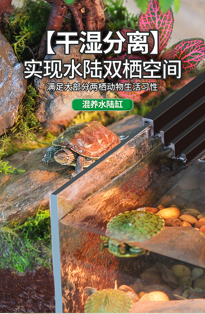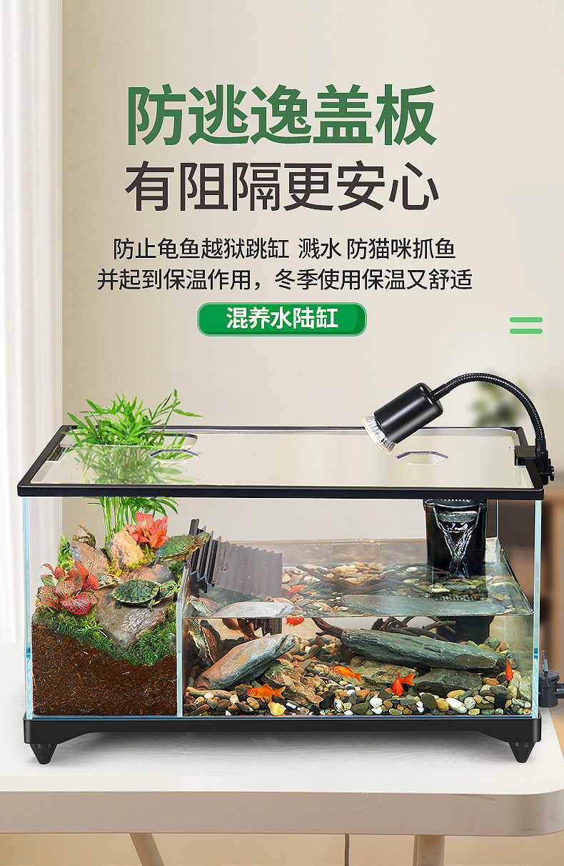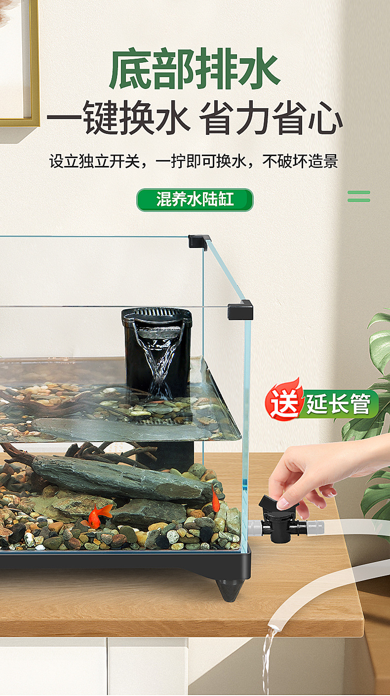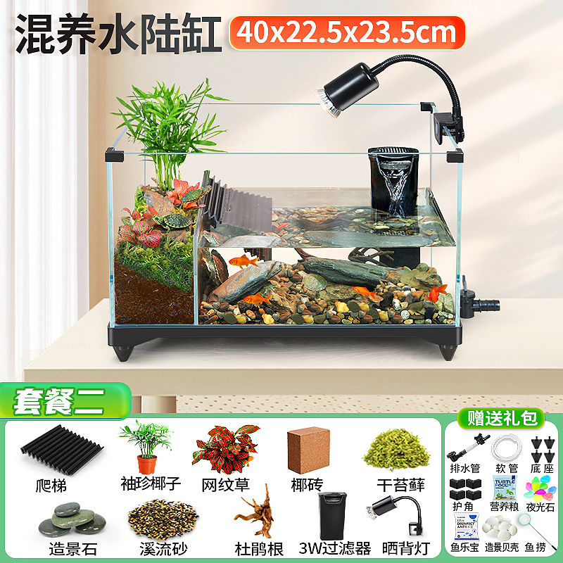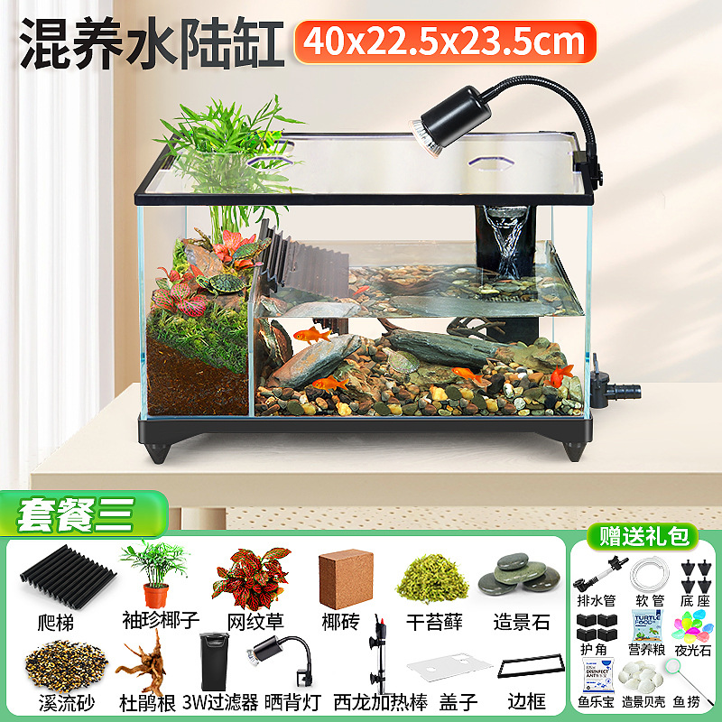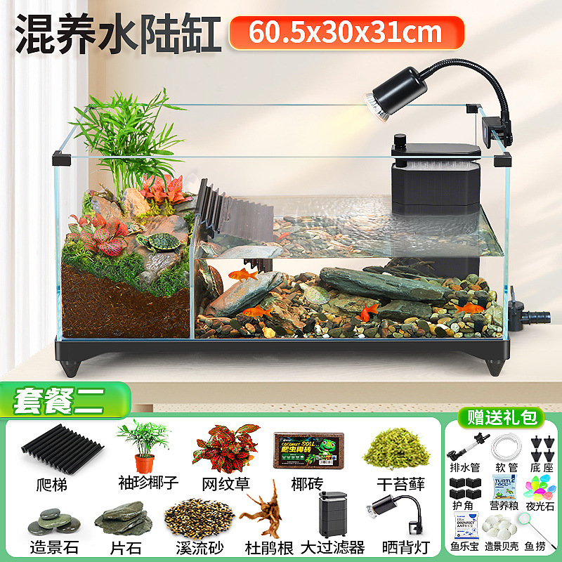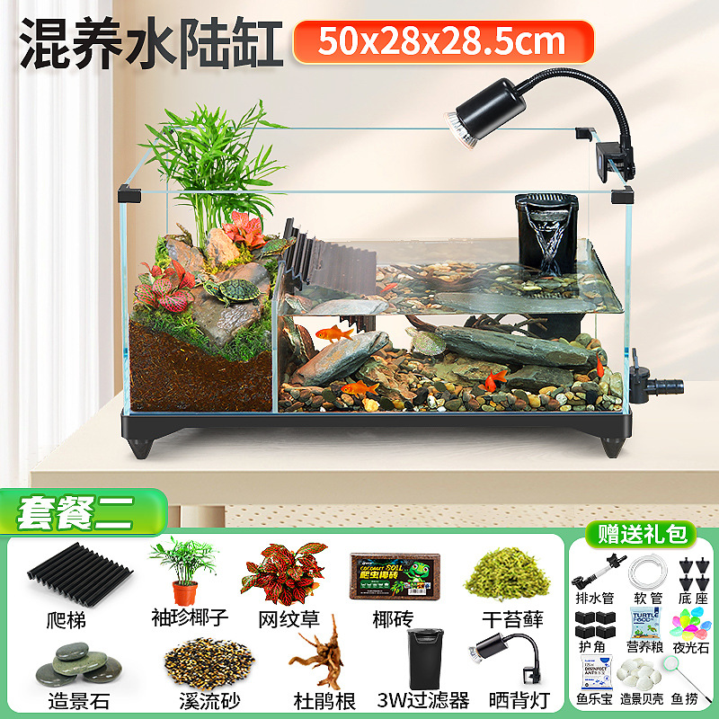 거북이 실린더 수륙 양용 실린더 슈퍼 화이트 유리 생태 조경 실린더 특수 실린더 작은 빌라 거북이 물고기 혼합 먹이스토어 가기
