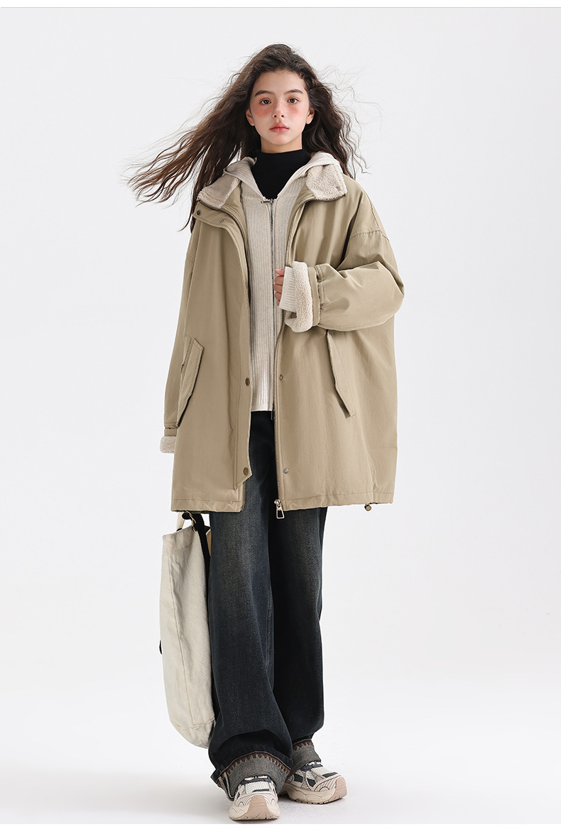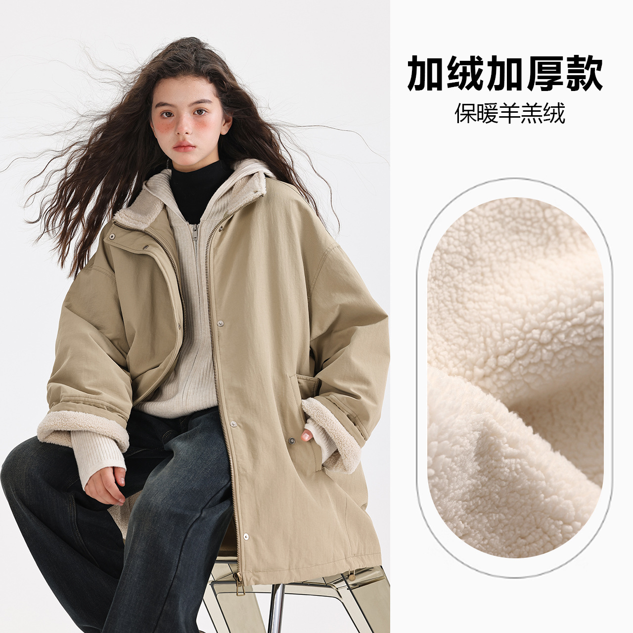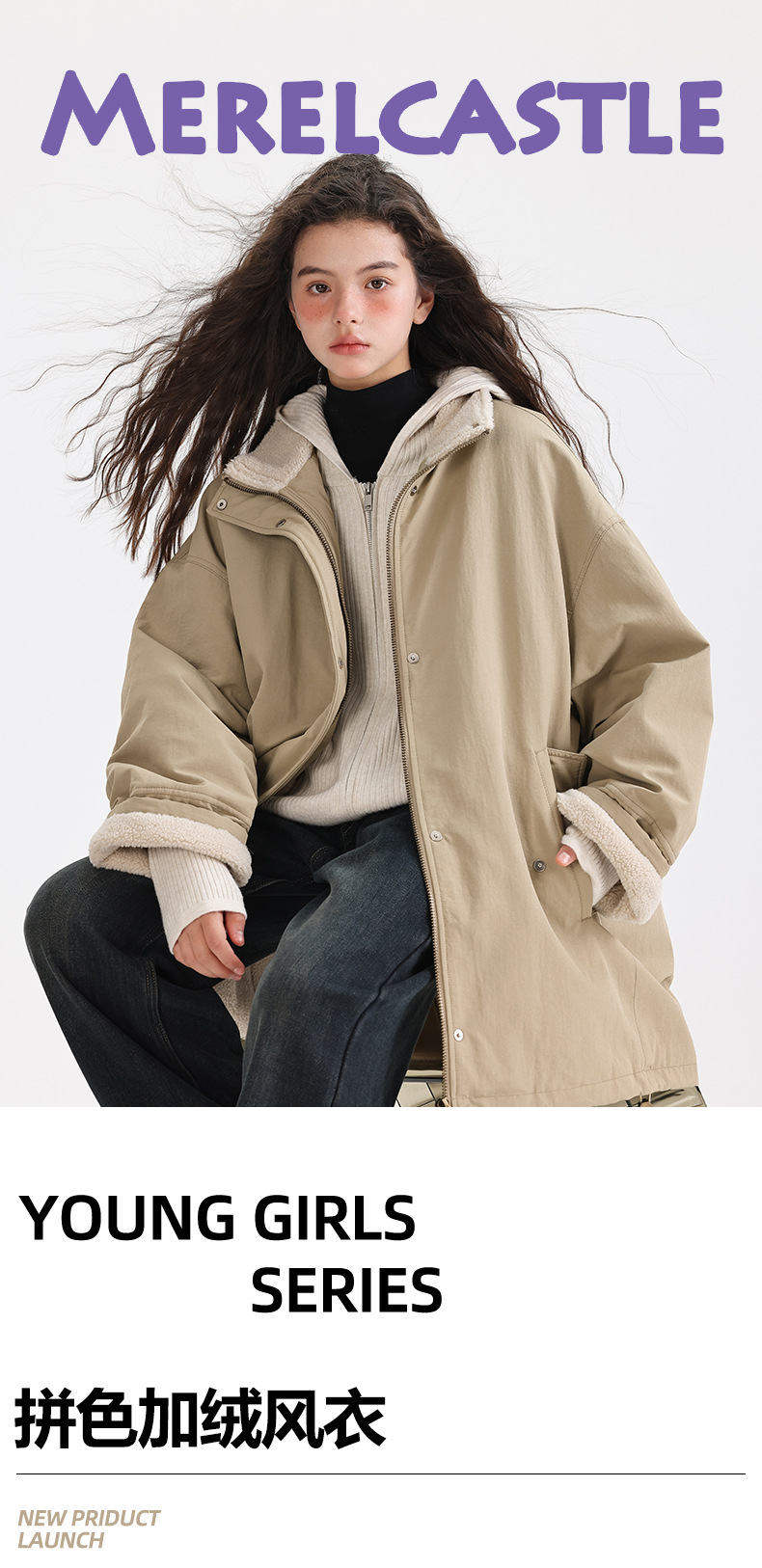 여자 벨벳 코트 2024 년 가을과 겨울 새 여자 겨울 코트 두꺼운 코트 중학교 학생 바람막이 중간 코트