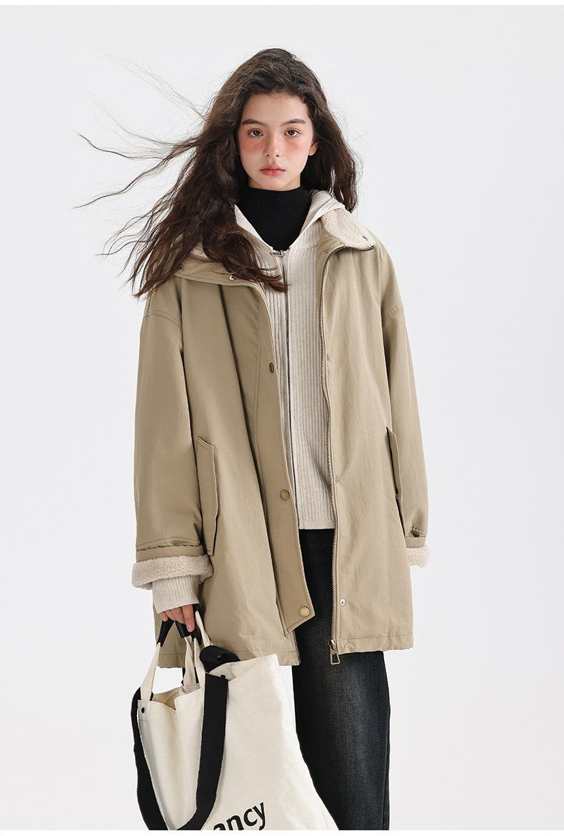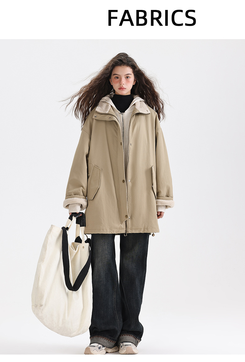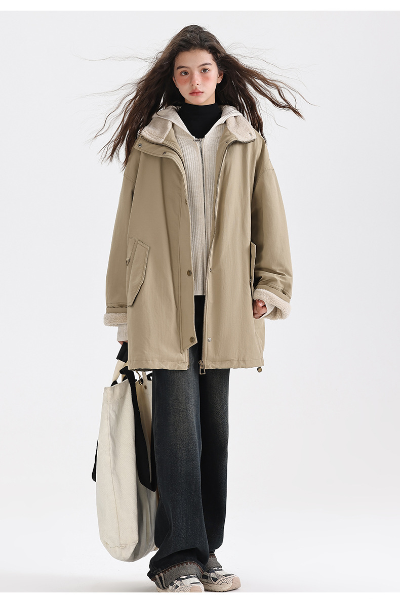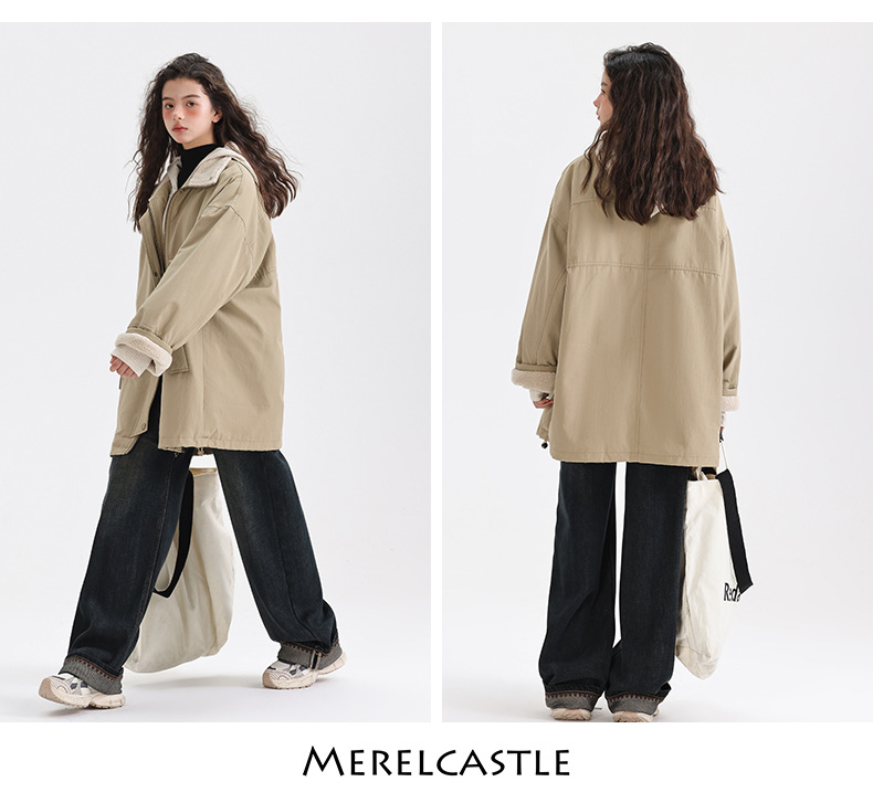 여자 벨벳 코트 2024 년 가을과 겨울 새 여자 겨울 코트 두꺼운 코트 중학교 학생 바람막이 중간 코트