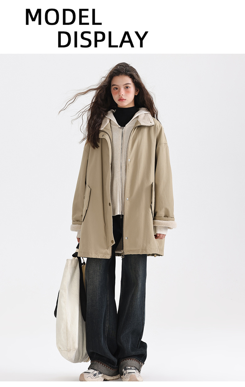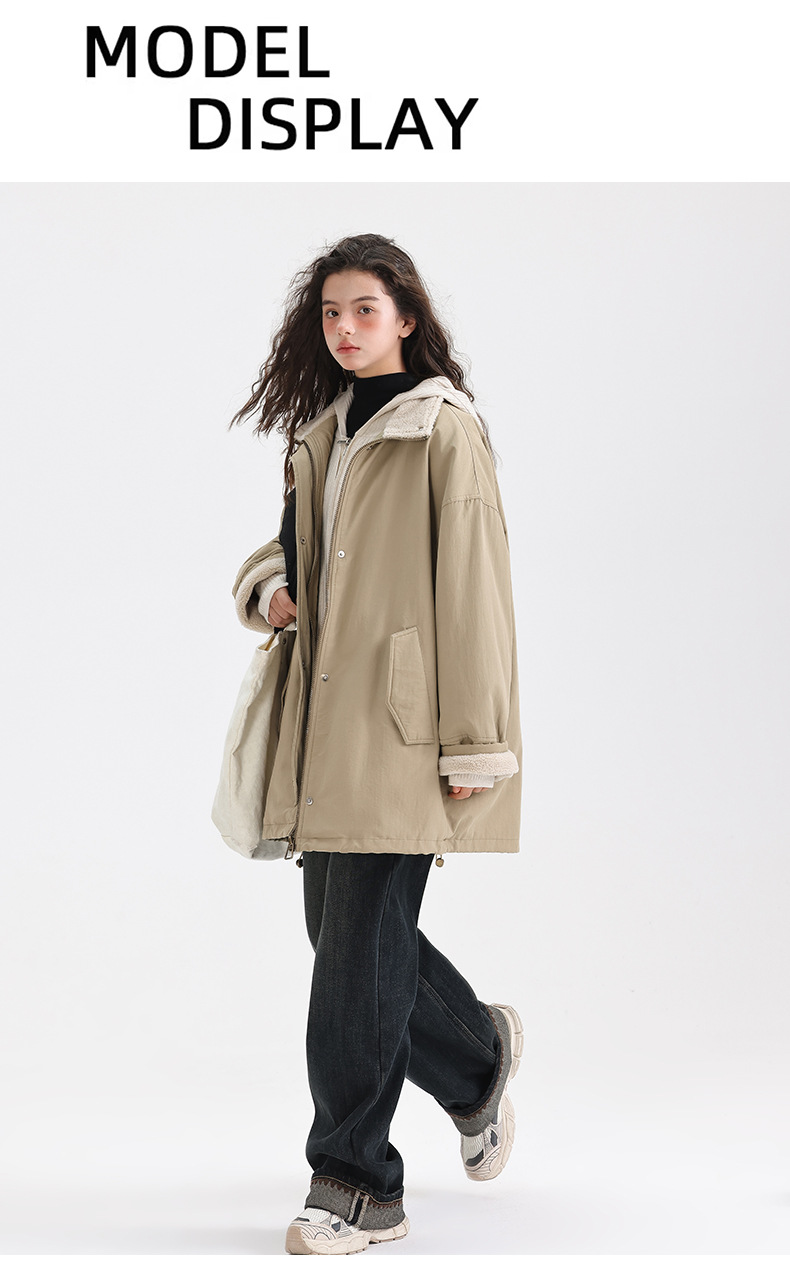 여자 벨벳 코트 2024 년 가을과 겨울 새 여자 겨울 코트 두꺼운 코트 중학교 학생 바람막이 중간 코트스토어 가기