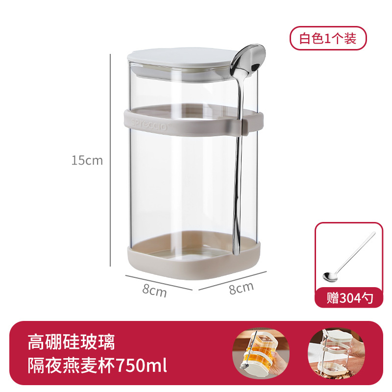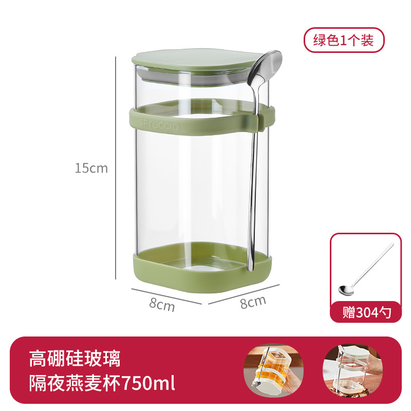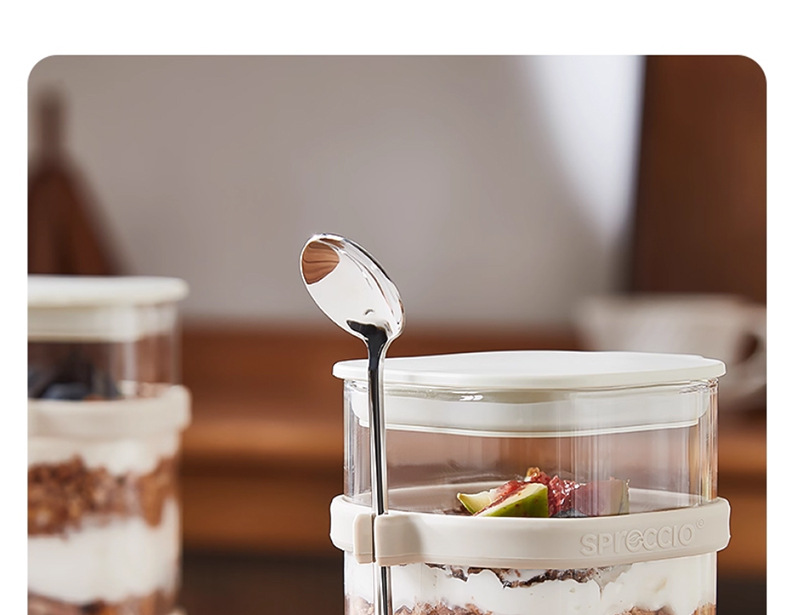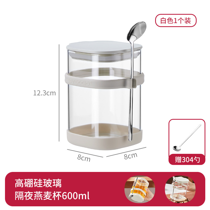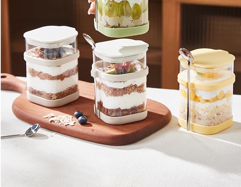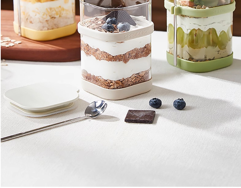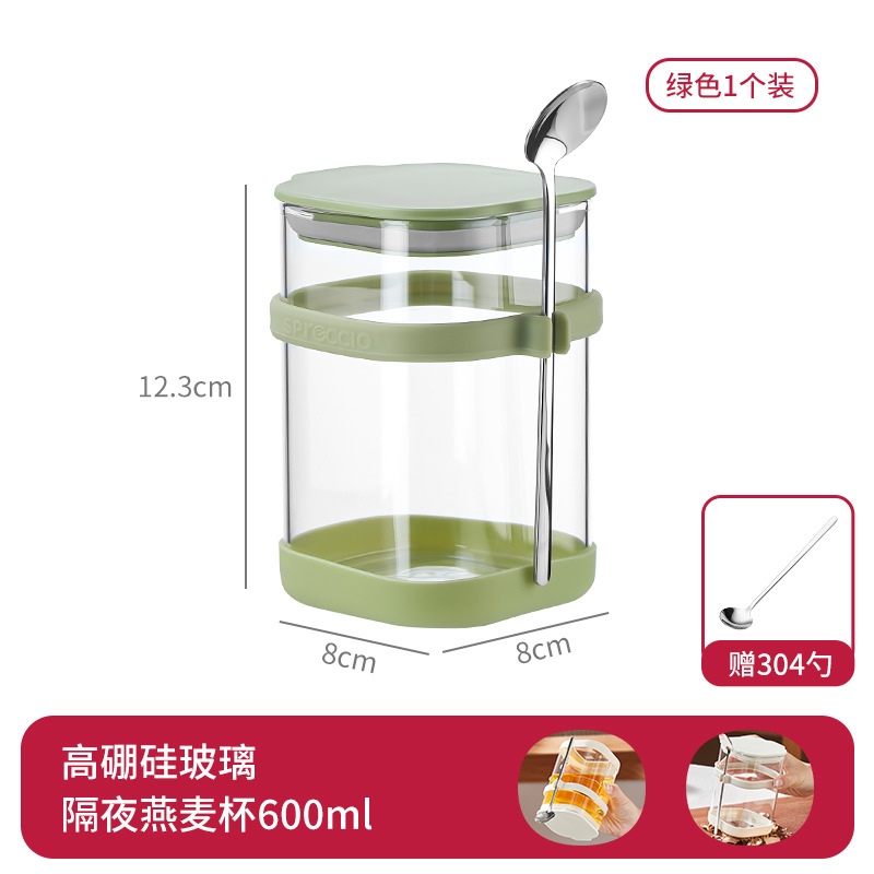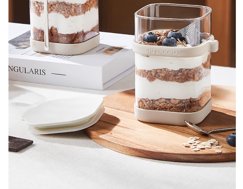 리드와 스푼 밀크 쉐이크가 들어간 하룻밤 오트밀 컵 휴대용 유리 조식 컵과 함께 오트밀 과일 요구르트 그릇스토어 가기