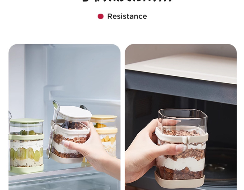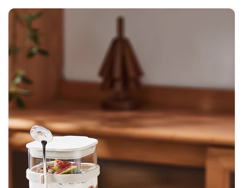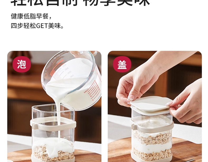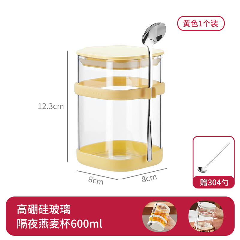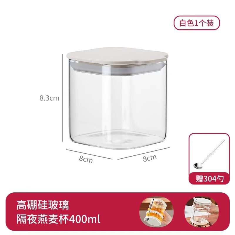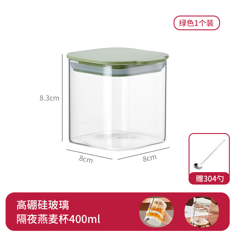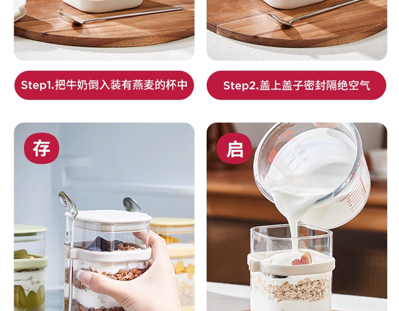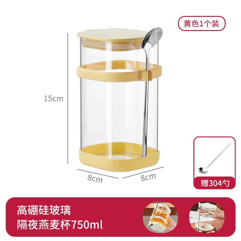 리드와 스푼 밀크 쉐이크가 들어간 하룻밤 오트밀 컵 휴대용 유리 조식 컵과 함께 오트밀 과일 요구르트 그릇스토어 가기