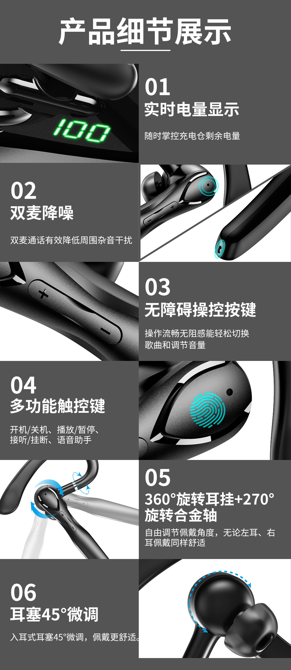 국경 간 소음 감소 개인 모델 tws 블루투스 헤드셋 귀 매달려 ENC 듀얼 마이크 소음 감소 전화 터치 디지털 디스플레이 헤드셋