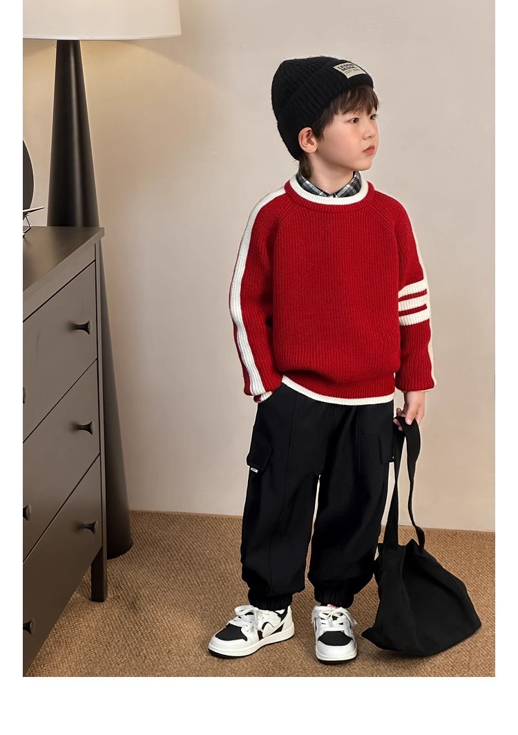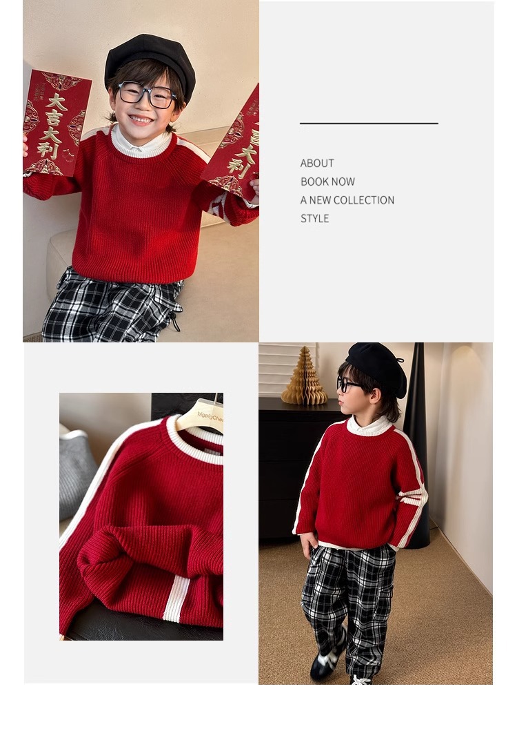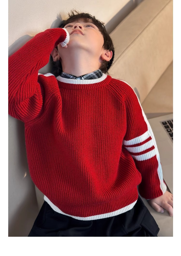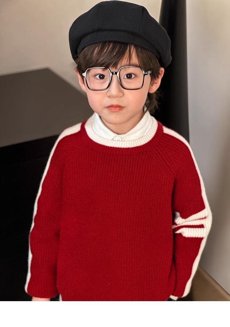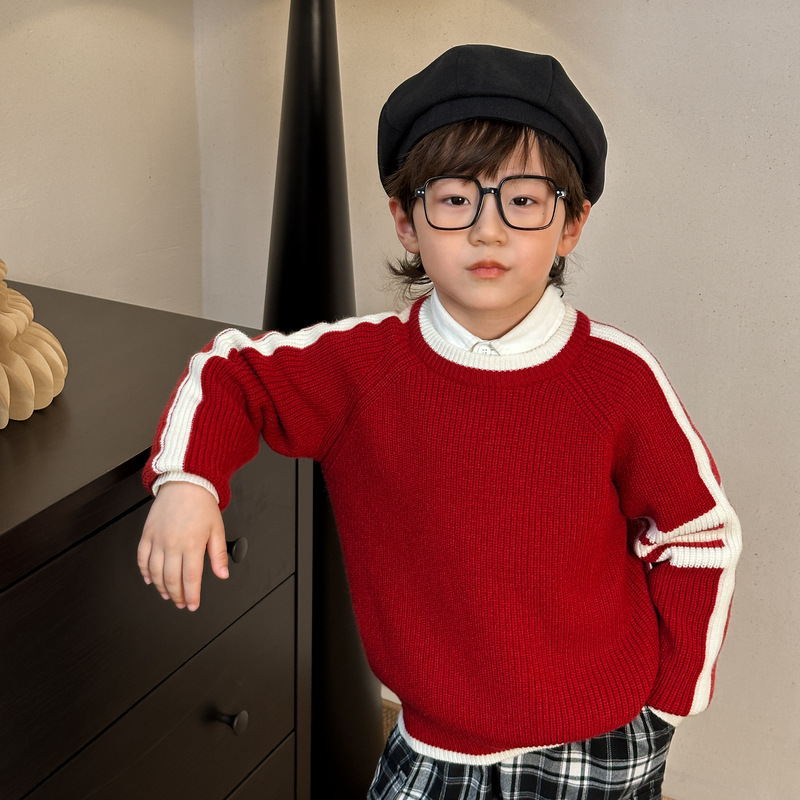 남학생 서양 붉은 스웨터 가을/겨울 2025 새로운 어린이 니트 셔츠 소년의 캐주얼 올 매치 탑스토어 가기