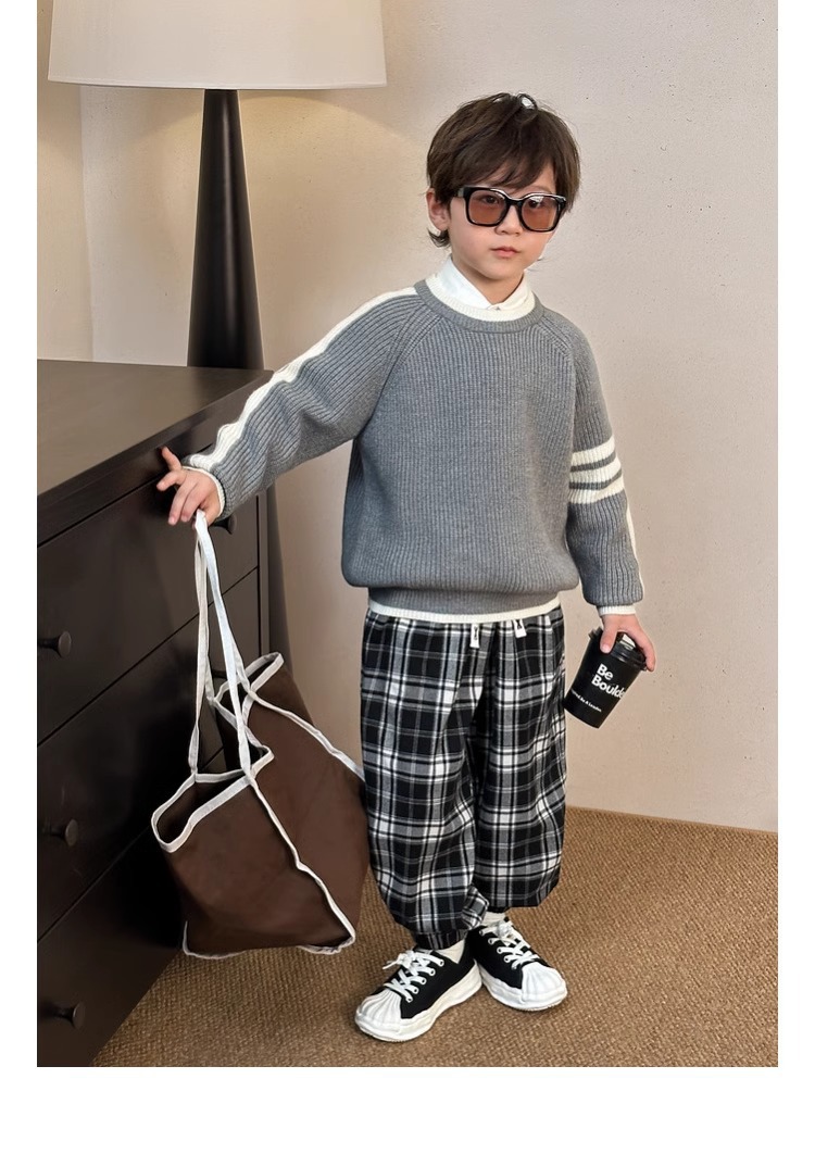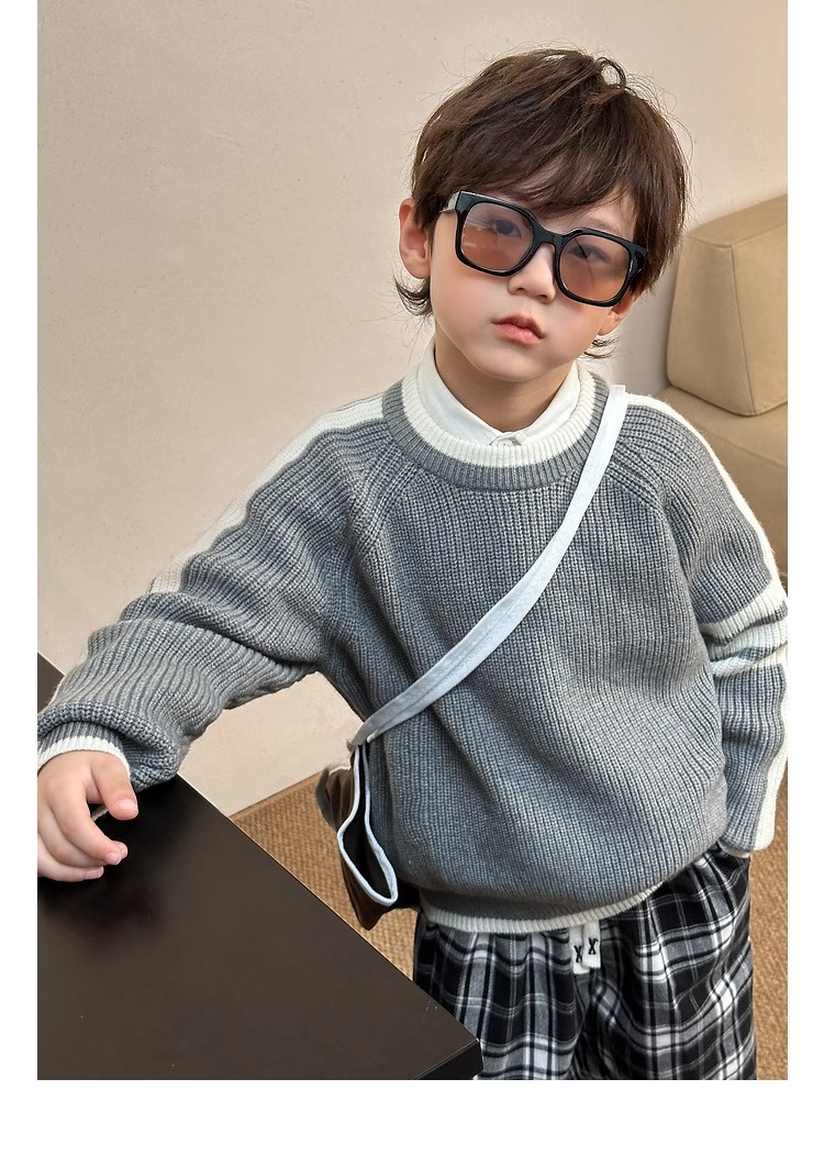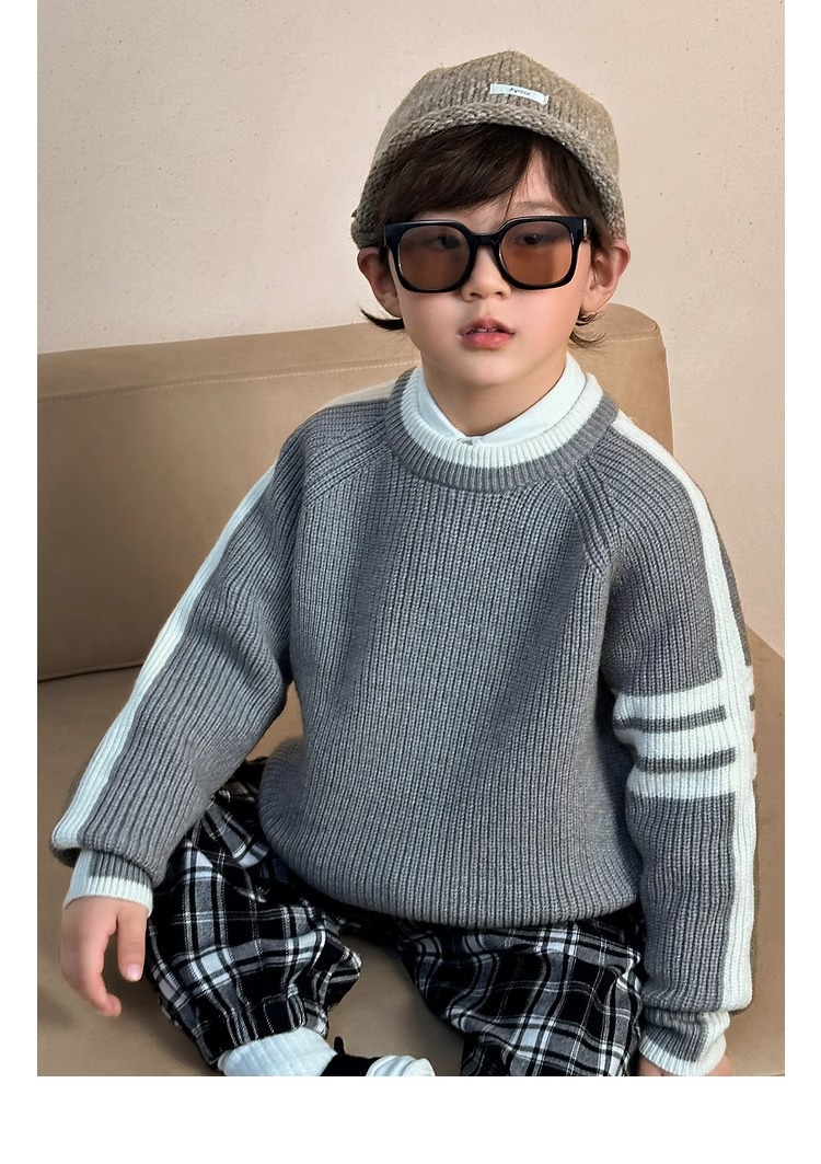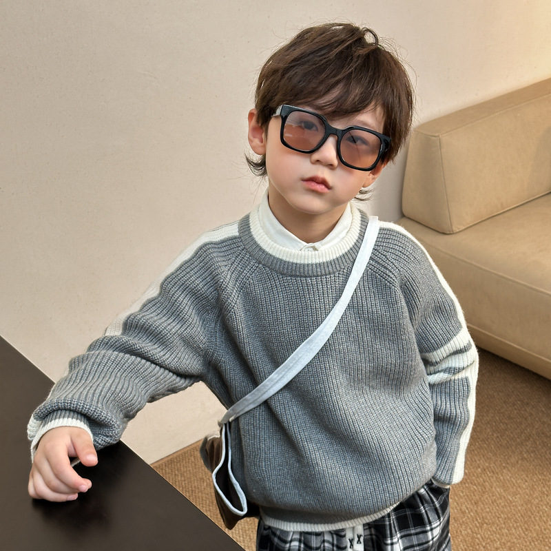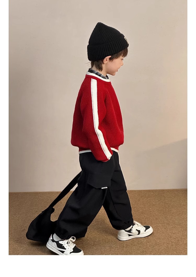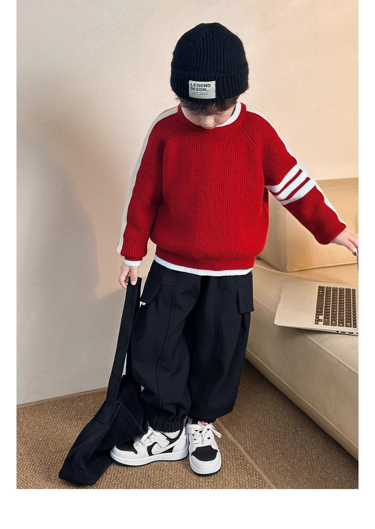 남학생 서양 붉은 스웨터 가을/겨울 2025 새로운 어린이 니트 셔츠 소년의 캐주얼 올 매치 탑스토어 가기