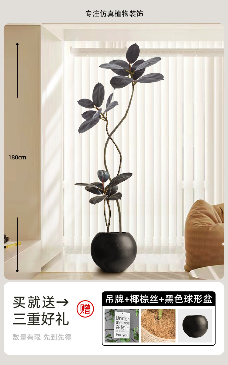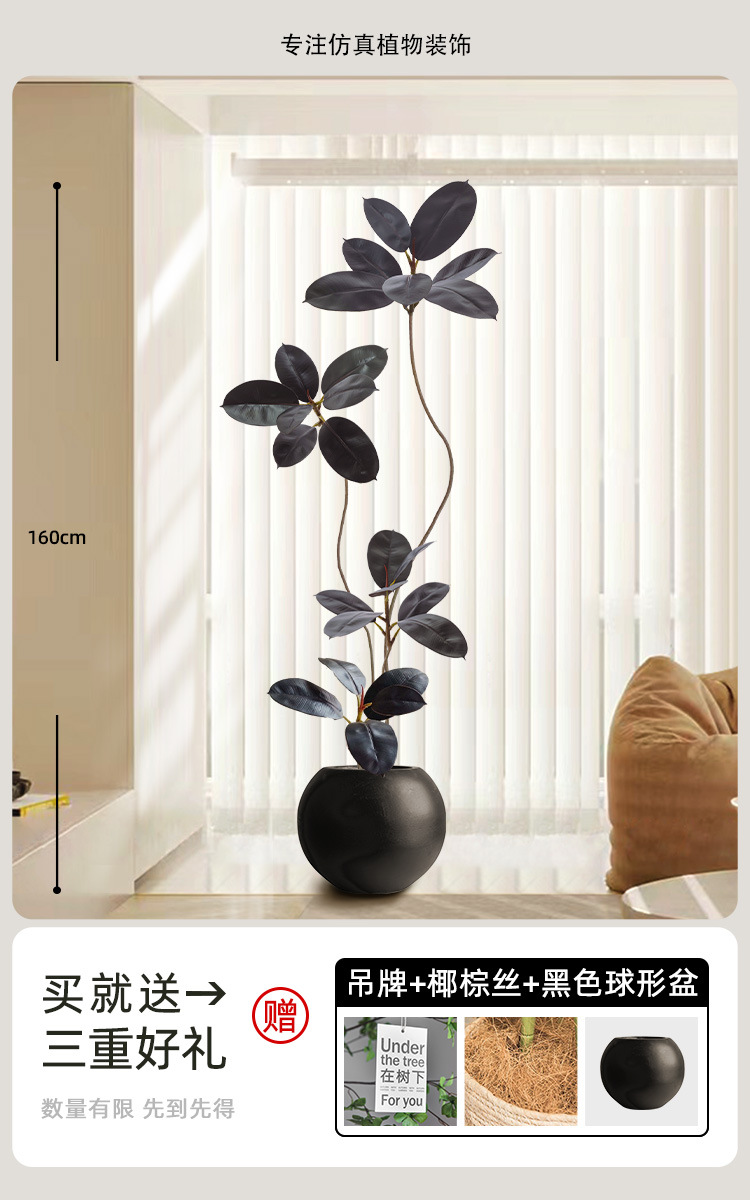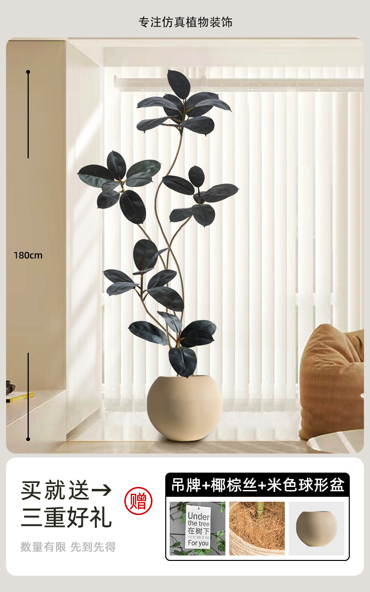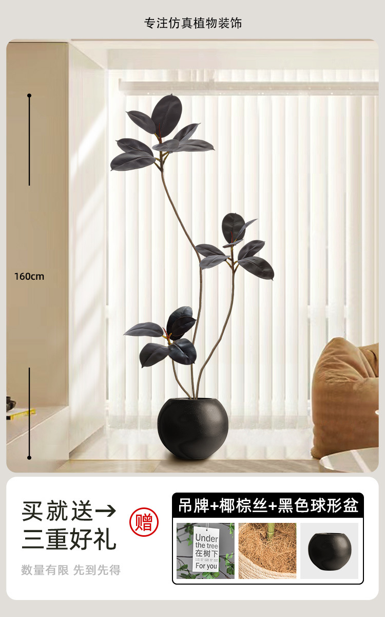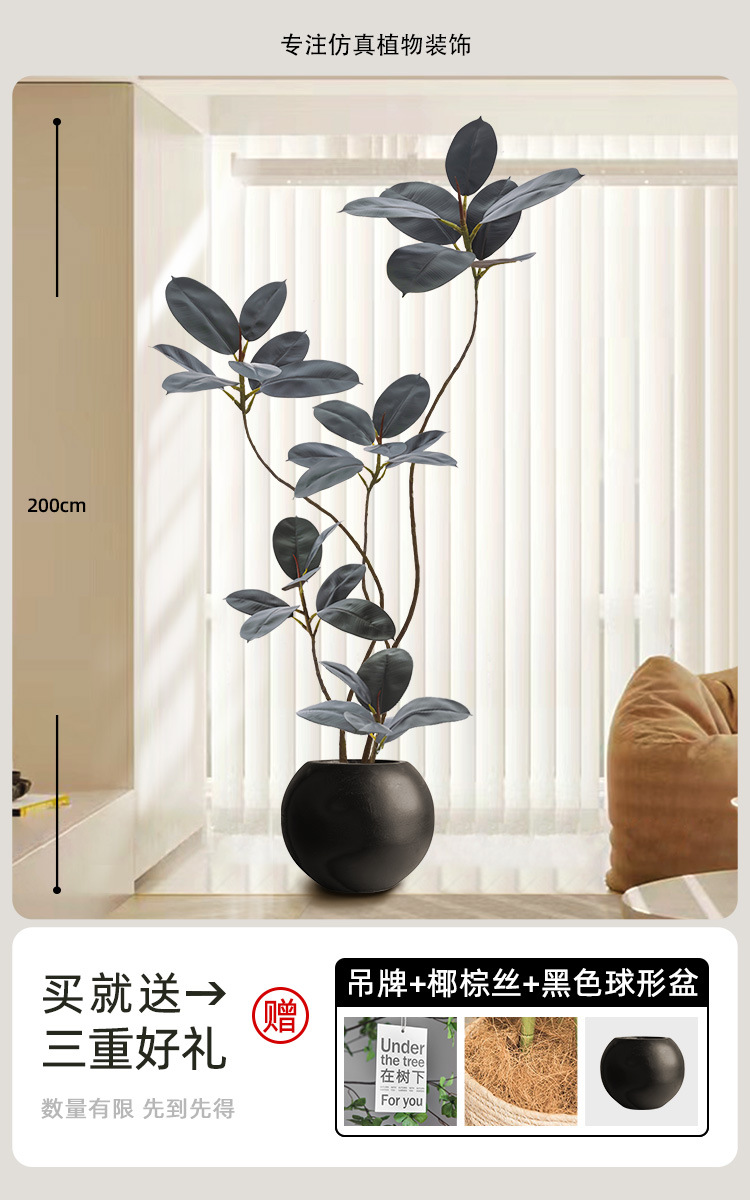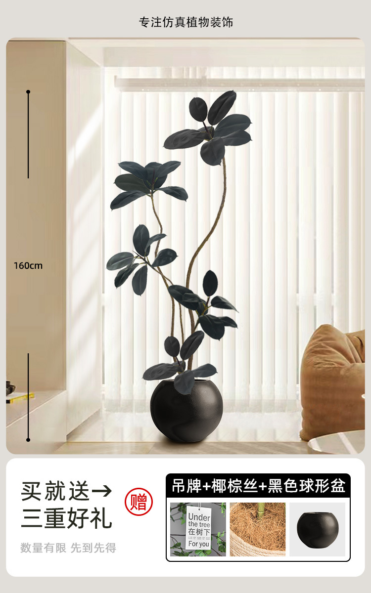 대형 거실 바닥 장식 실내 소파 TV 캐비닛 가짜 식물 검은 왕 콩 고무 나무 녹색 심기스토어 가기
