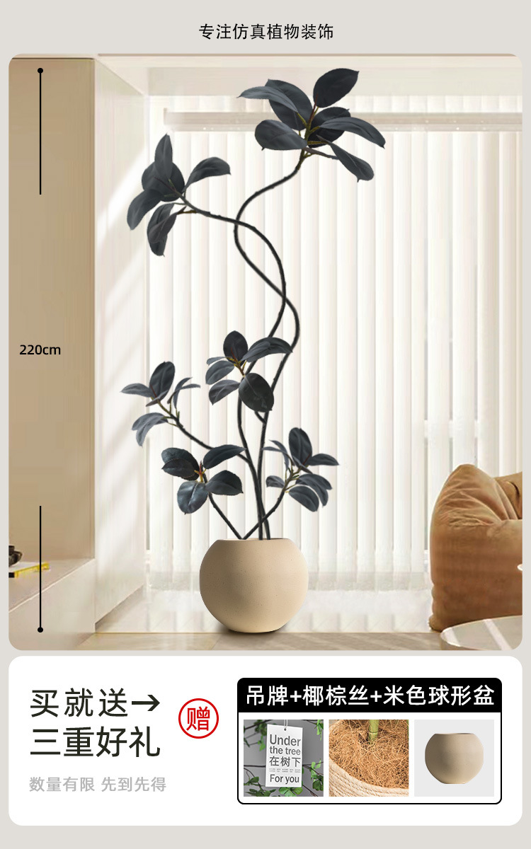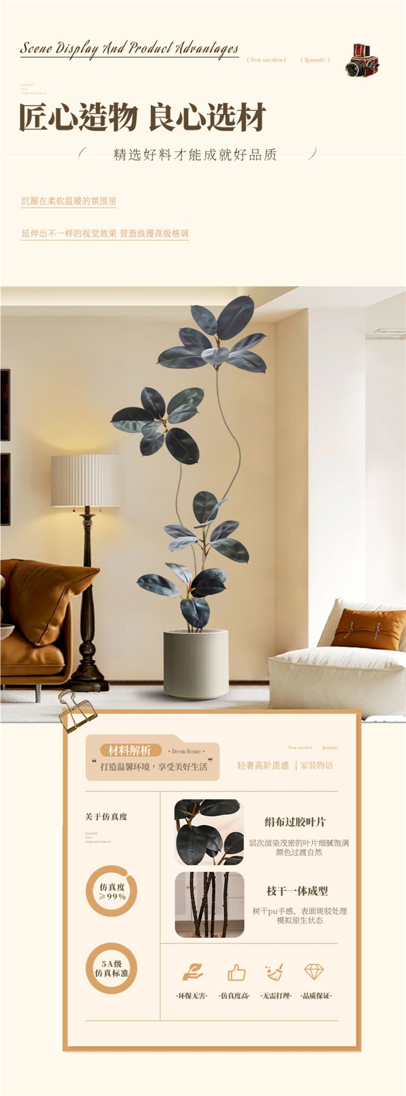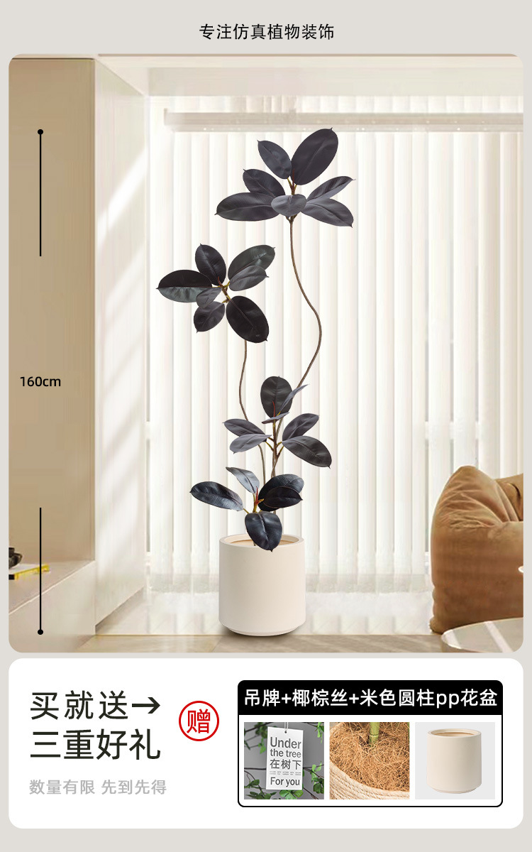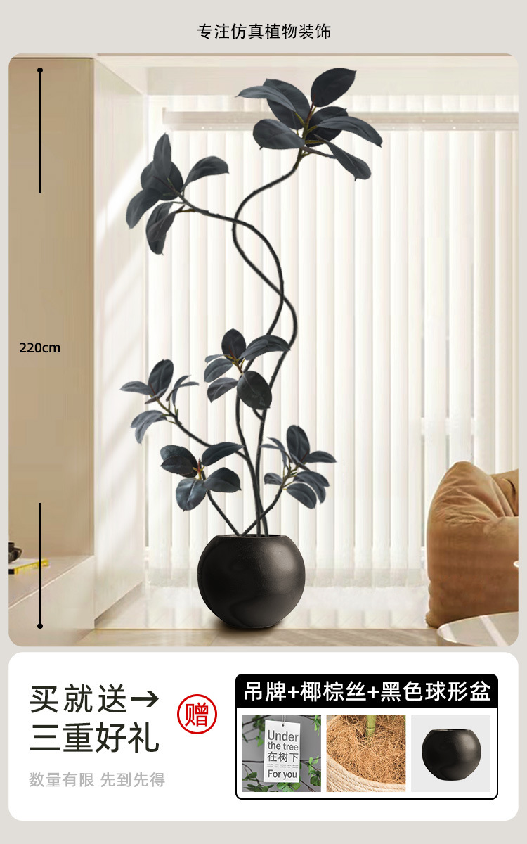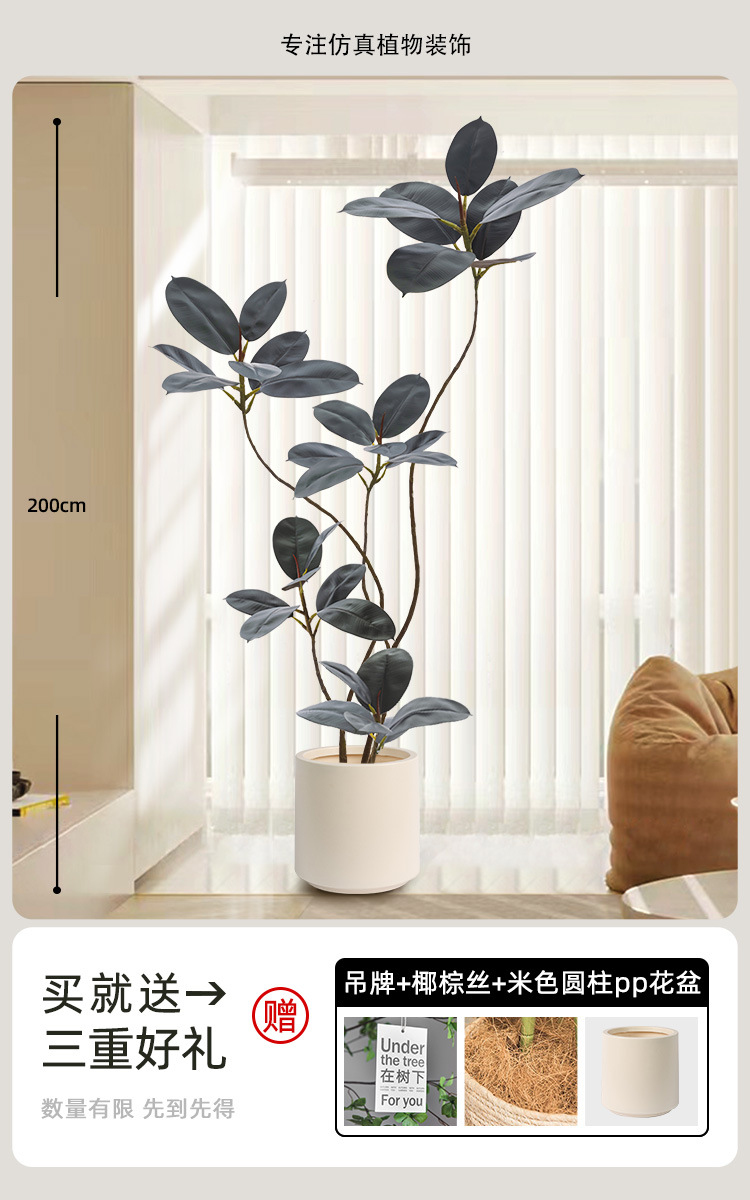 대형 거실 바닥 장식 실내 소파 TV 캐비닛 가짜 식물 검은 왕 콩 고무 나무 녹색 심기스토어 가기
