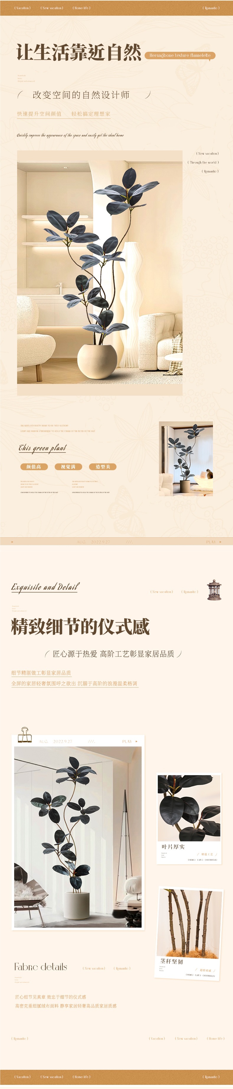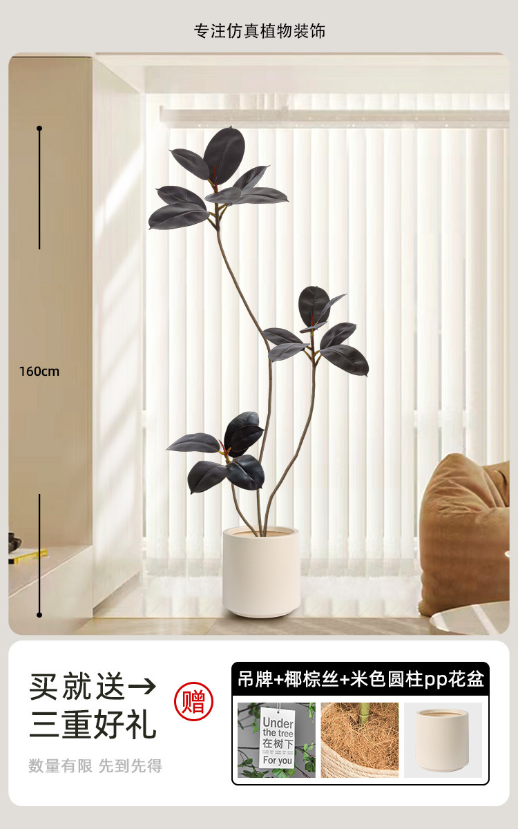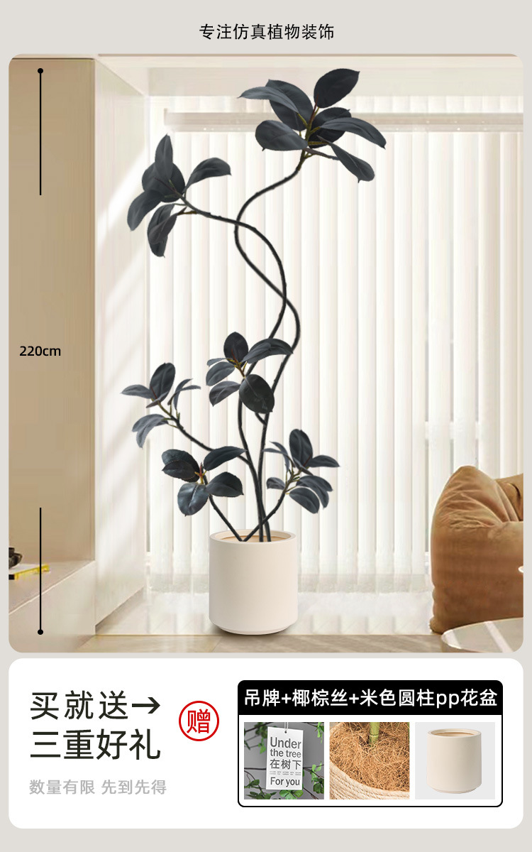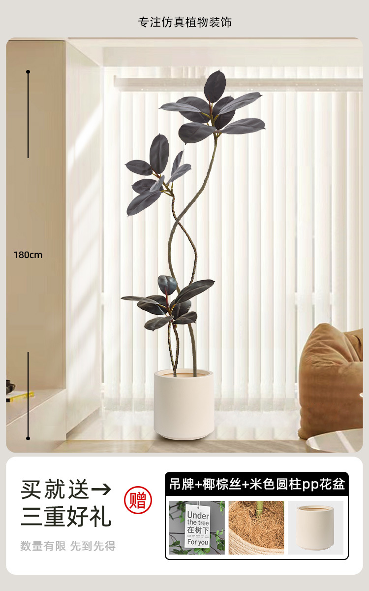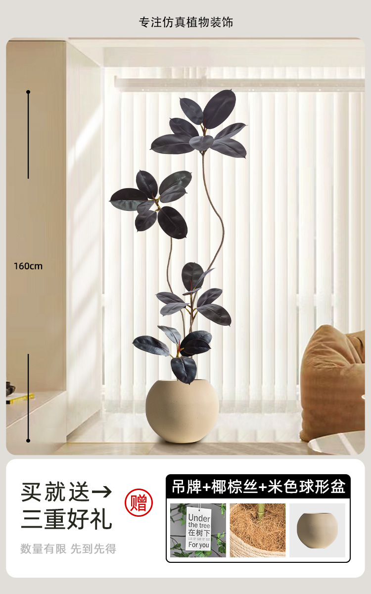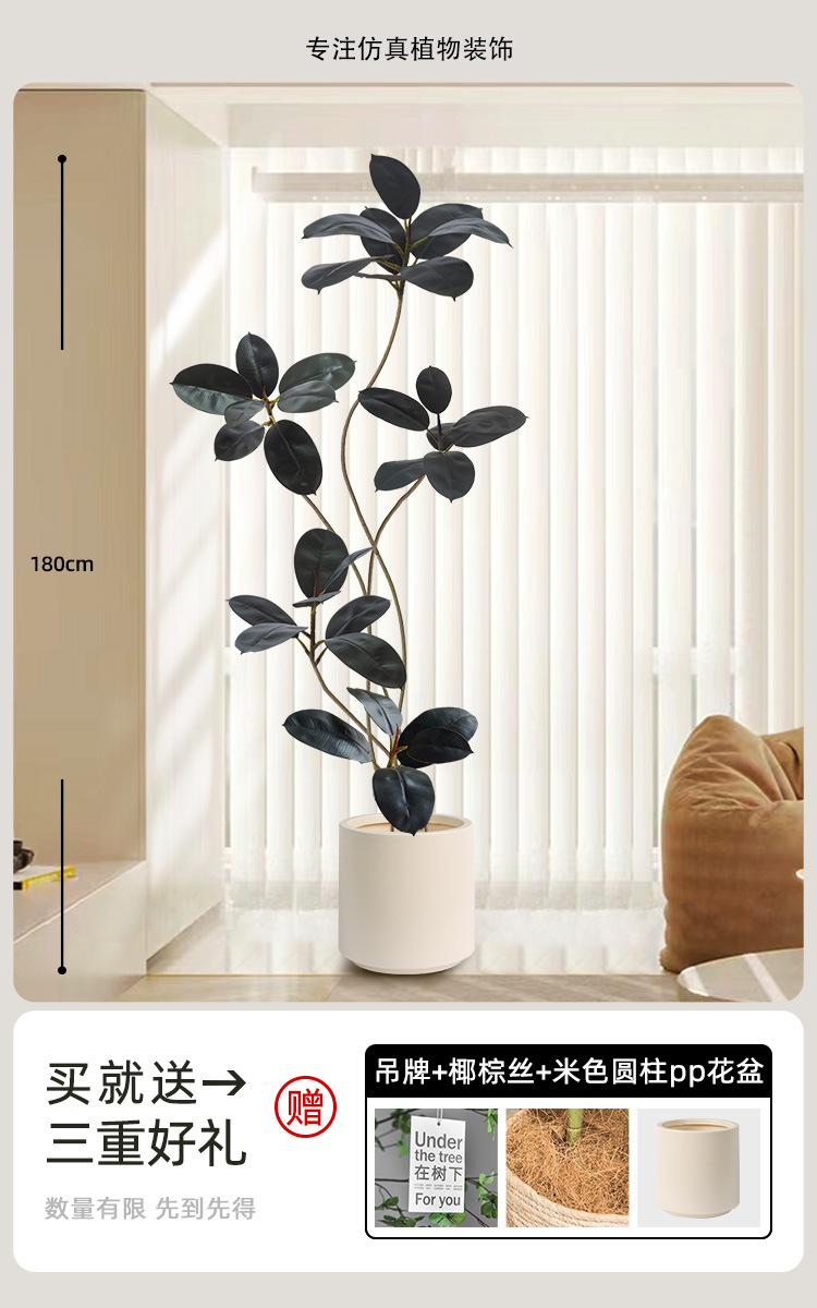 대형 거실 바닥 장식 실내 소파 TV 캐비닛 가짜 식물 검은 왕 콩 고무 나무 녹색 심기스토어 가기