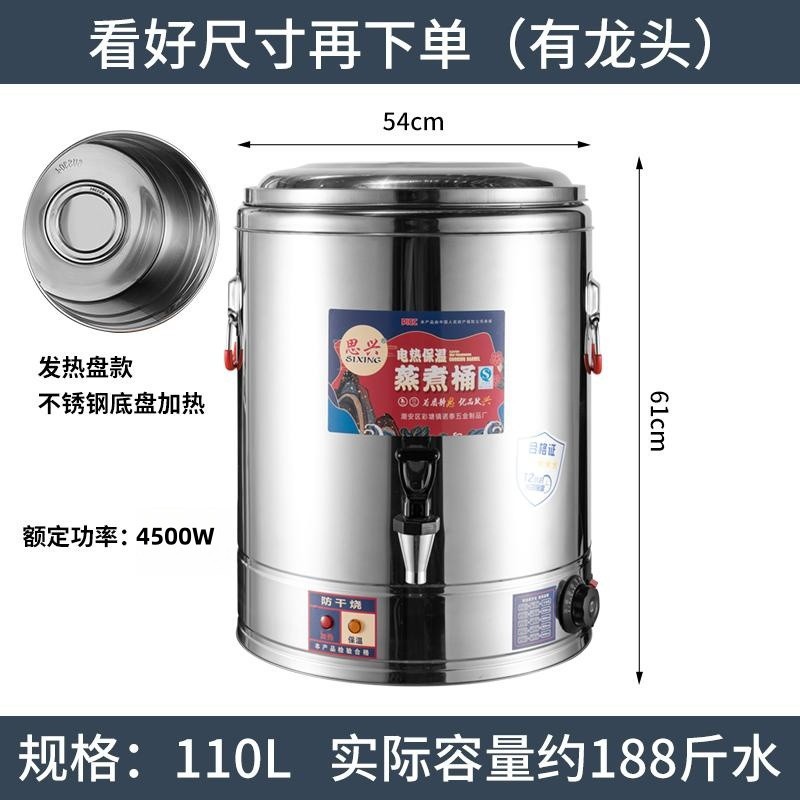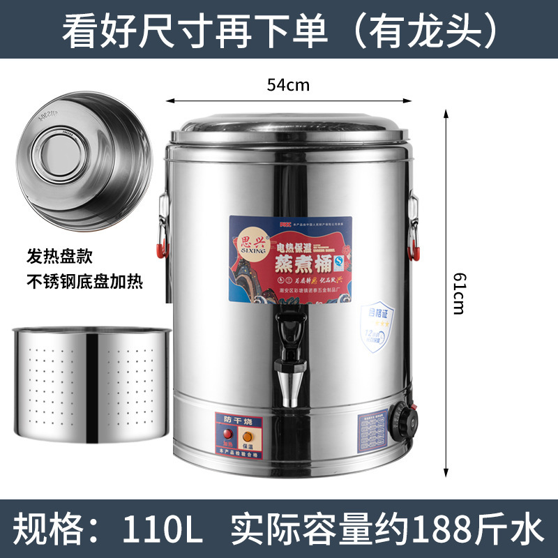 • 110L 전기 보온통 [수도꼭지 포함] 304 가열판 화상방지, 찜 겸용, 프리찜