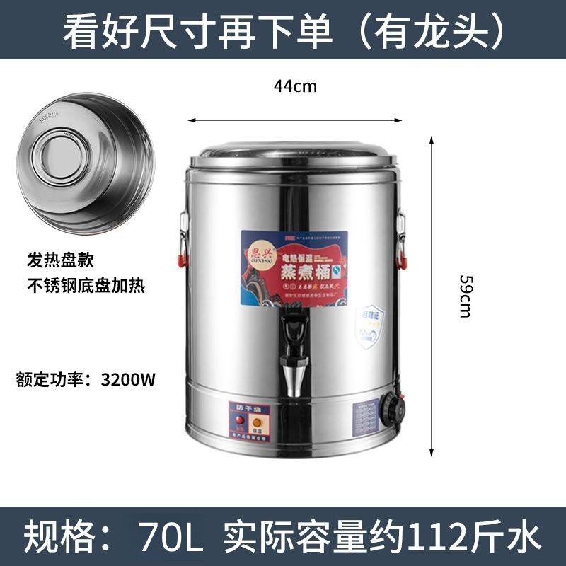 • 70L 전기 보온통 [수도꼭지 포함] 304 가열판 화상방지, 찜 겸용, 프리찜