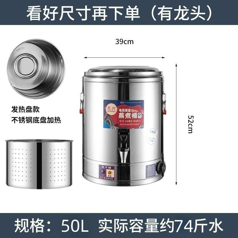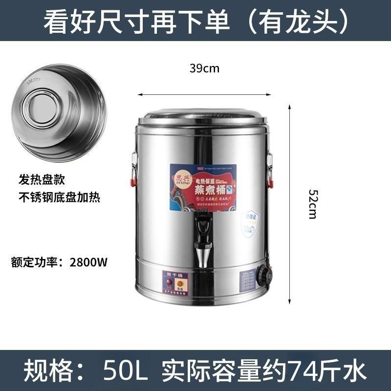 • 50L 전기 보온통 [수도꼭지 포함] 304 가열판 화상방지, 찜 겸용, 프리찜