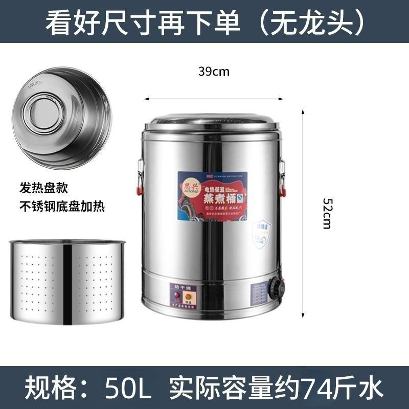 • 50L 전기 보온통 [수도꼭지 없음] 304 가열판 화상방지, 찜 겸용, 프리찜