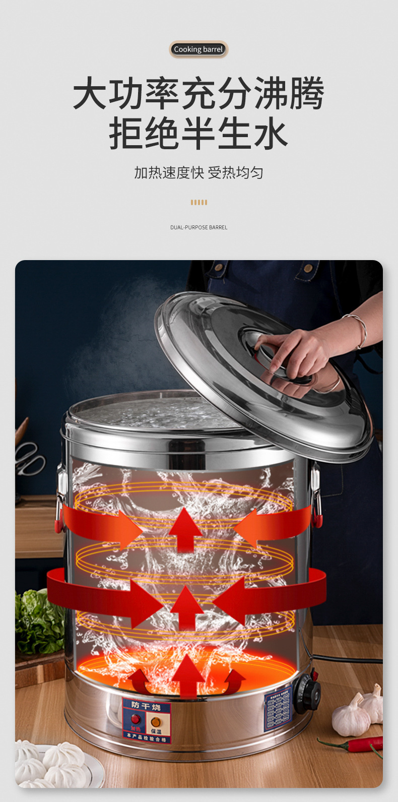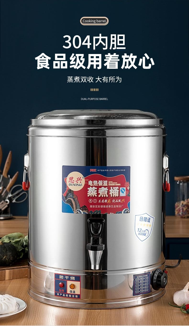 전기 난방 절연 배럴 상업용 스테인레스 스틸 베이킹 배럴 절인 고기 배럴 전기 난방 절연 통합 수프 냄비 수프 배럴 대용량스토어 가기
