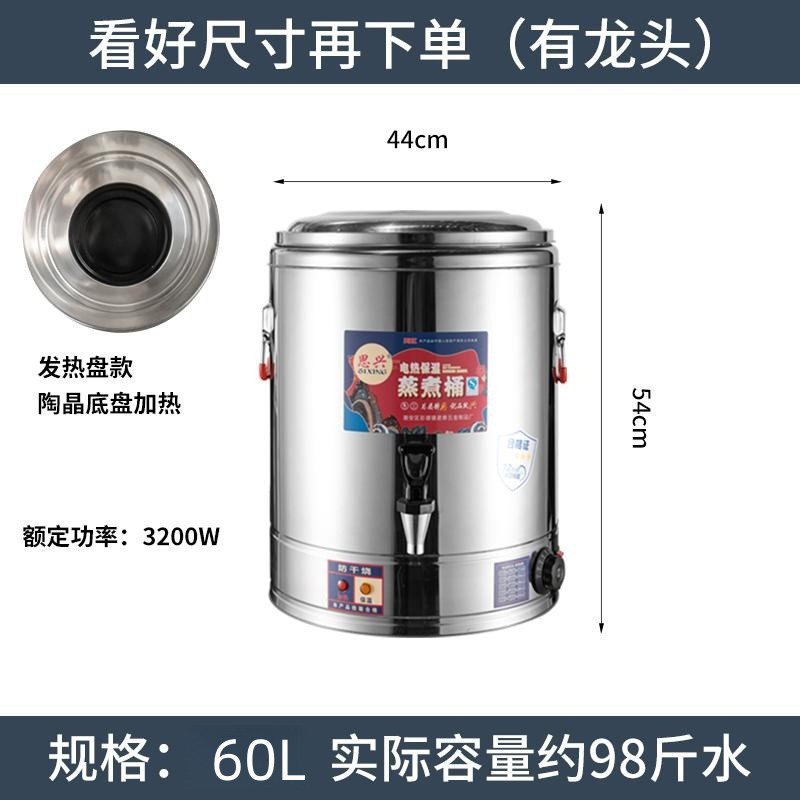 • 60L 전기 보온통 [수도꼭지 포함] 304 가열판 화상방지, 찜 겸용, 프리찜