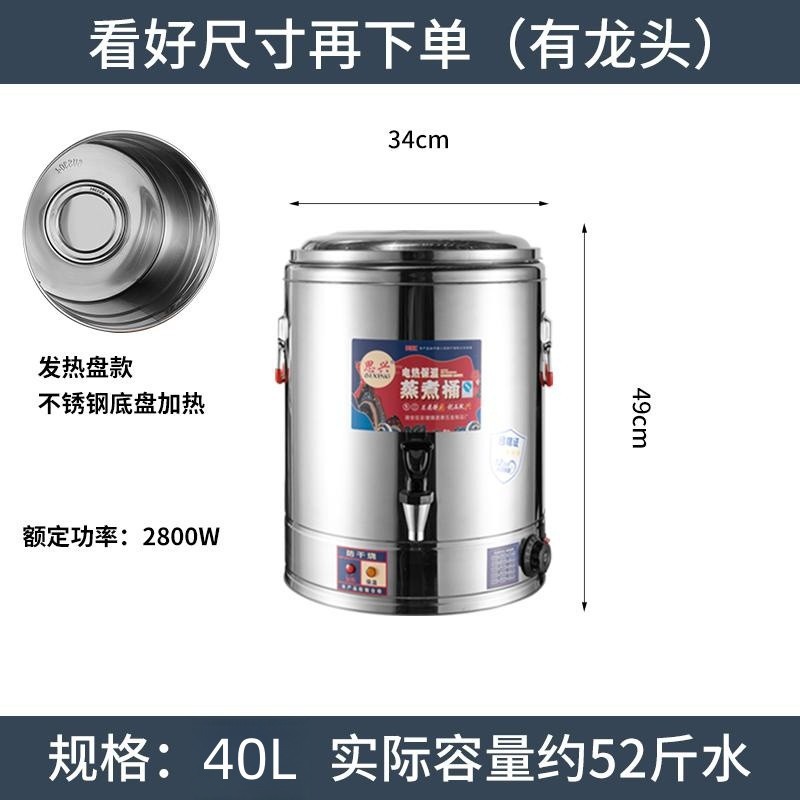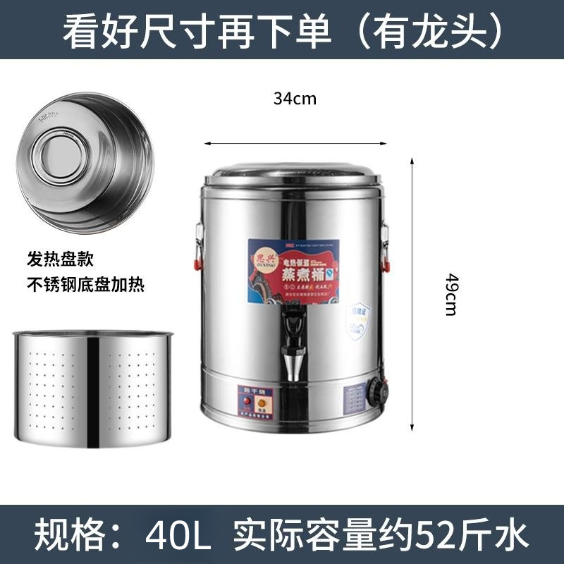 • 40L 전기 보온통 [수도꼭지 포함] 304 가열판 화상방지, 찜 겸용, 프리찜