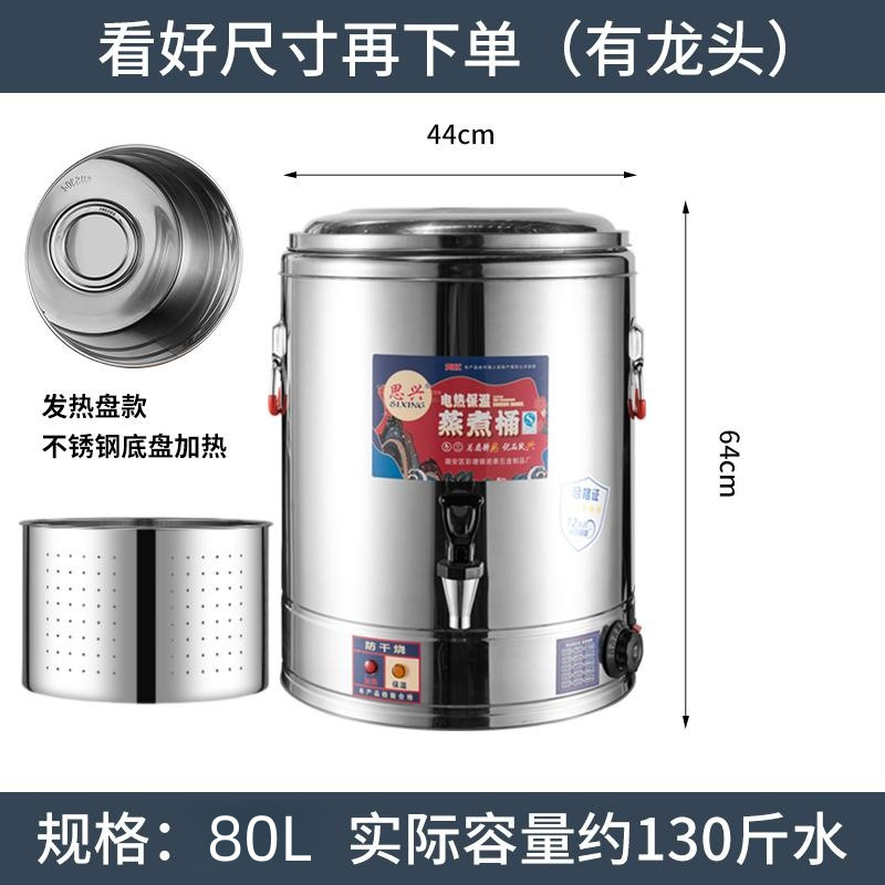 • 80L 전기 보온통 [수도꼭지 포함] 304 가열판 화상방지, 찜 겸용, 프리찜