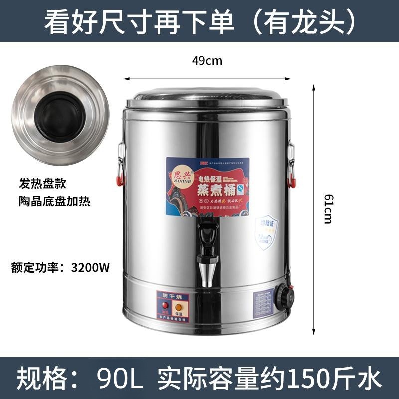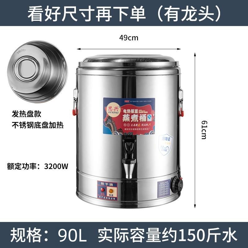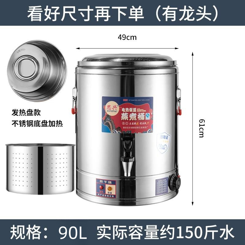 • 90L 전기 보온통 [수도꼭지 포함] 304 가열판 화상방지, 찜 겸용, 프리찜