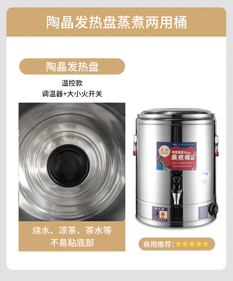 • 50L 전기 보온통 [수도꼭지 없음] 304 세라믹 크리스탈 플레이트 화상 방지 및 찌기용 겸용, 무료 찌기