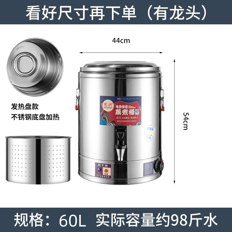 • 60L 전기 보온통 [수도꼭지 없음] 304 가열판 화상방지, 찜 겸용, 프리찜