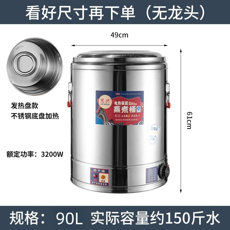 • 90L 전기 보온통 [수도꼭지 없음] 304 가열판 화상방지, 찜 겸용, 프리찜
